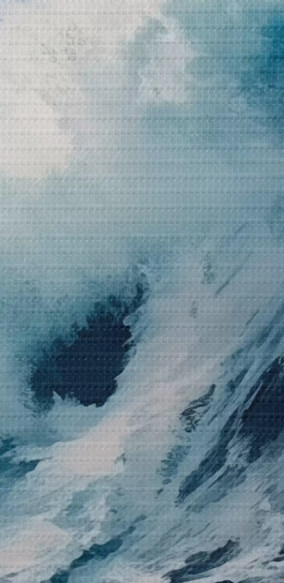 Selle lõuendi peenike niidipunus meenutab professionaalse kunstniku lõuendi pinda.