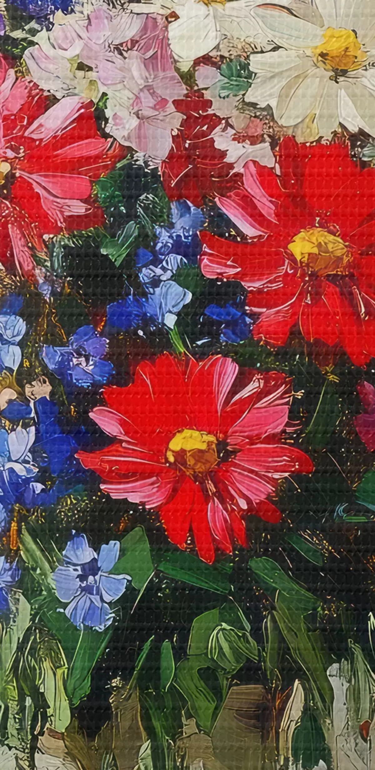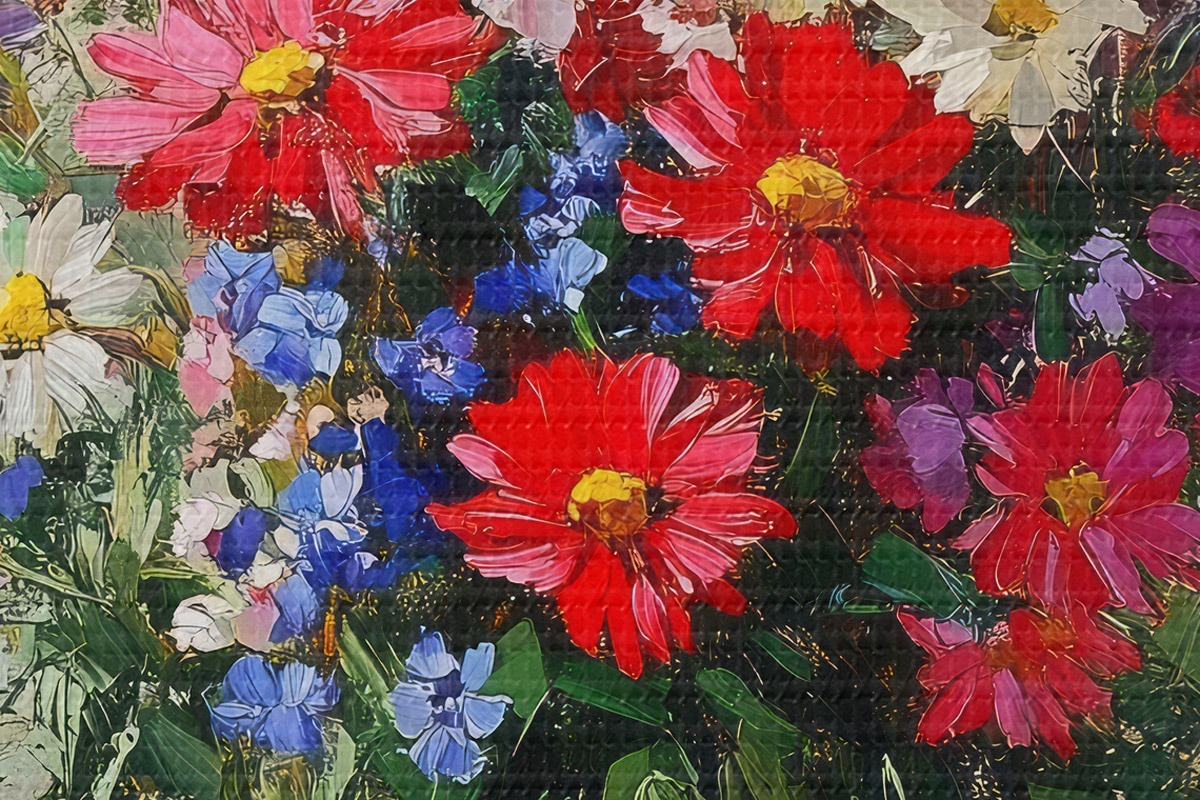 Selle lõuendi peenike niidipunus meenutab professionaalse kunstniku lõuendi pinda.