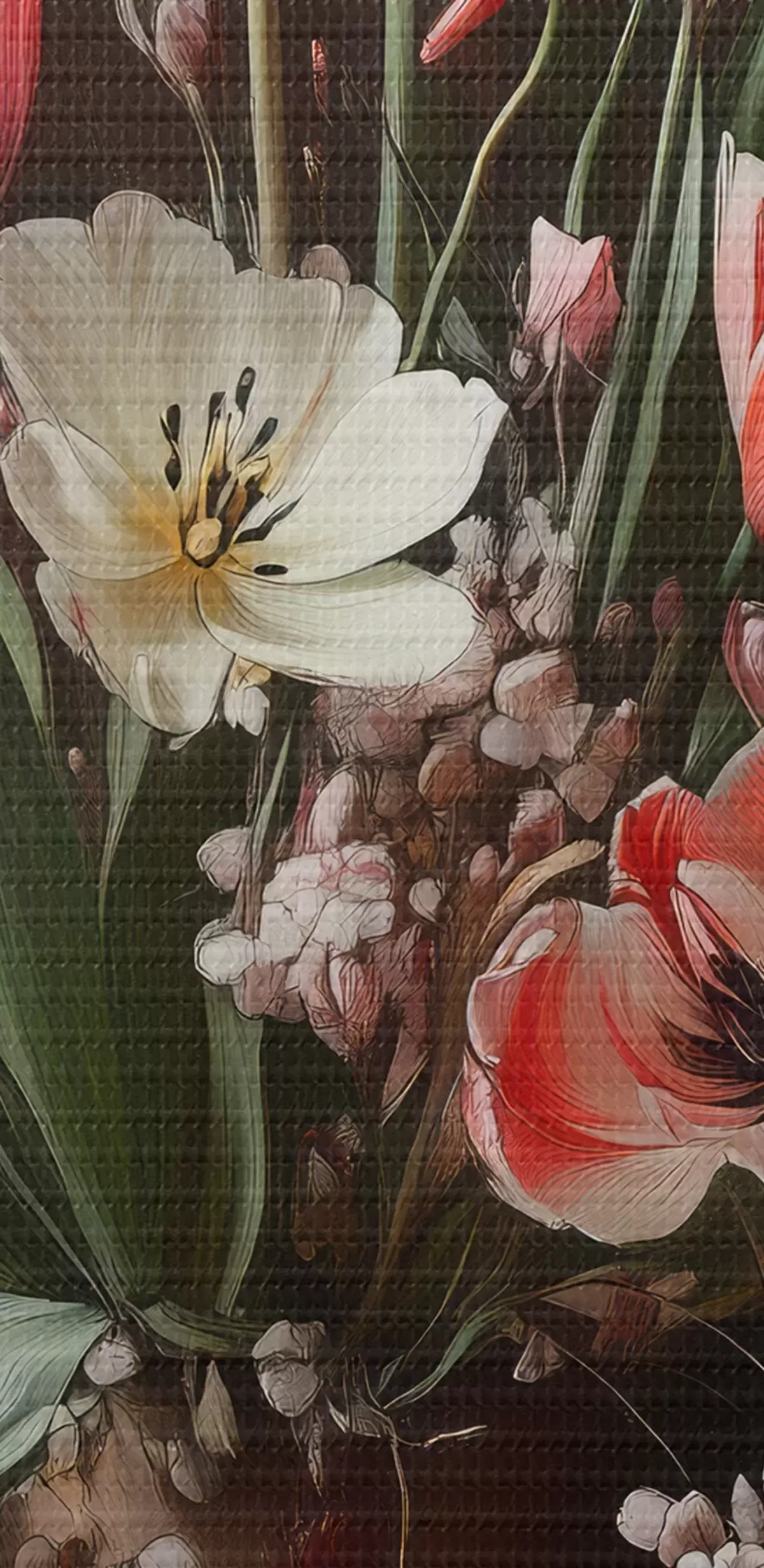 Selle lõuendi peenike niidipunus meenutab professionaalse kunstniku lõuendi pinda.