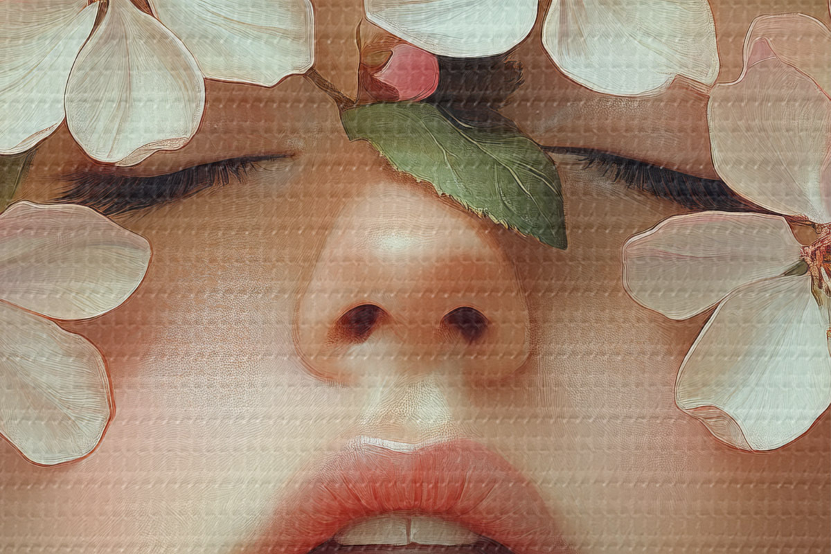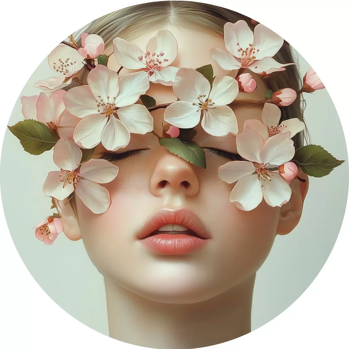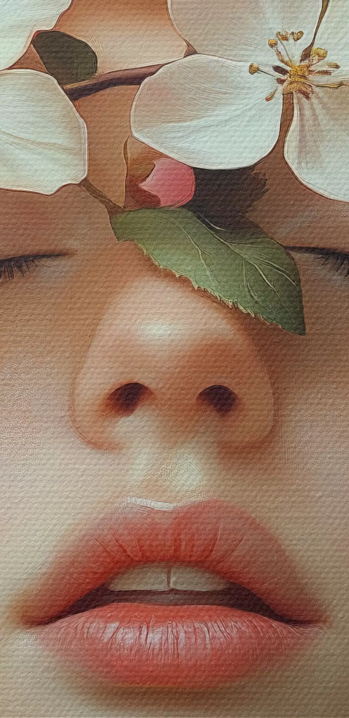 Pilt Tüdruku portree lilledega näol Nr r42506