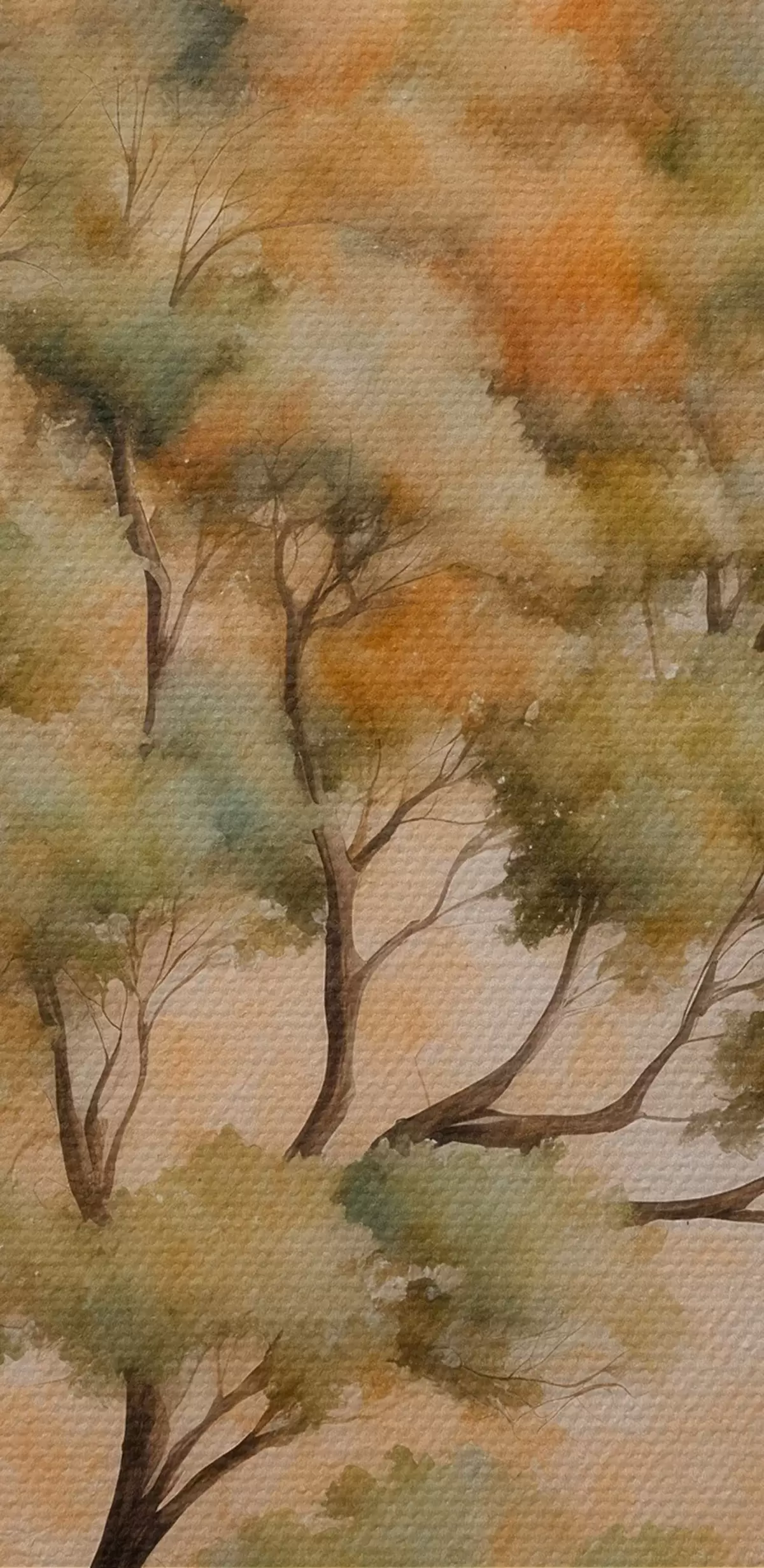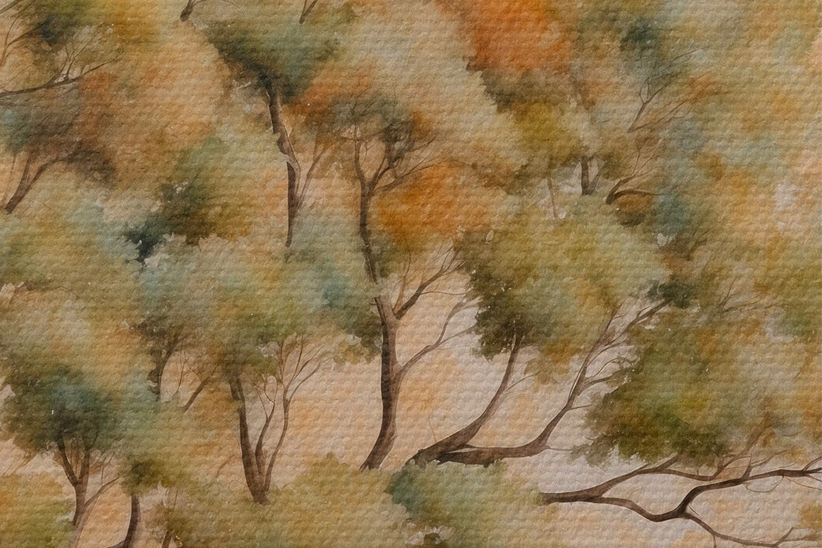 Pilt Puu oranžil ja valgel taustal akvarellmaalide stiilis Nr r42514