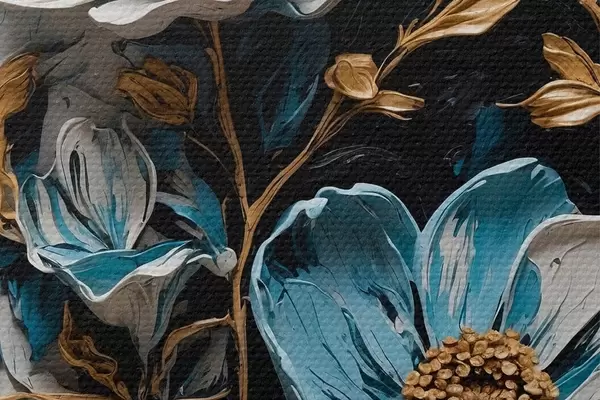 Pilt Lilled ja varred mustal ja valgel taustal õlimaali stiilis Nr r42532