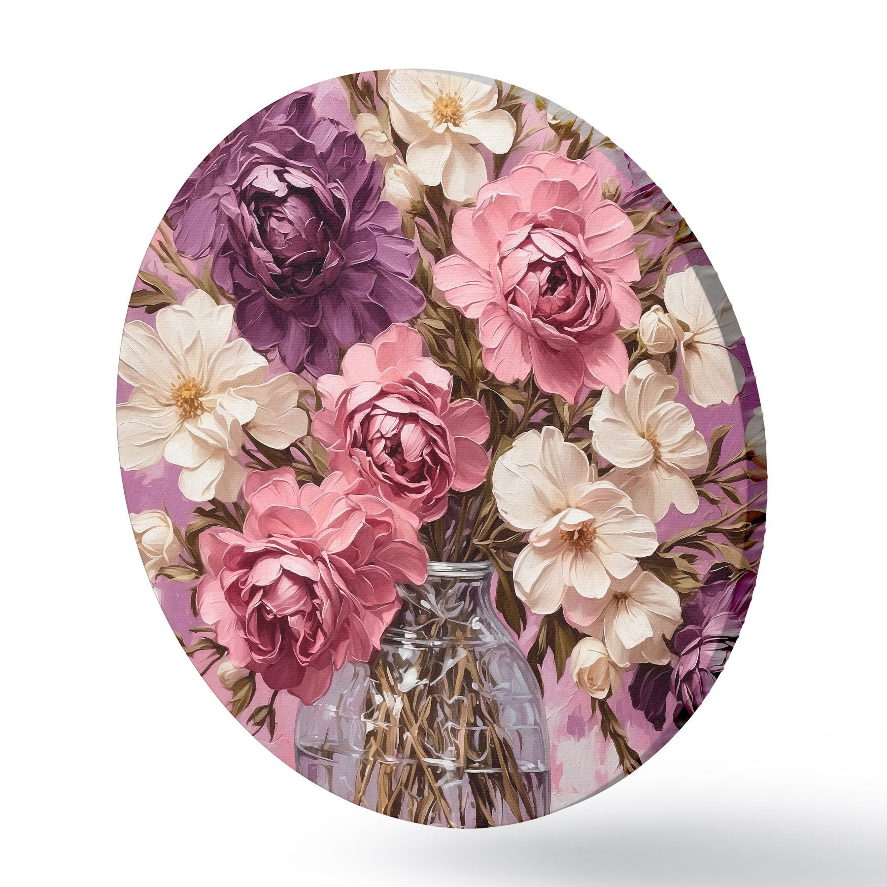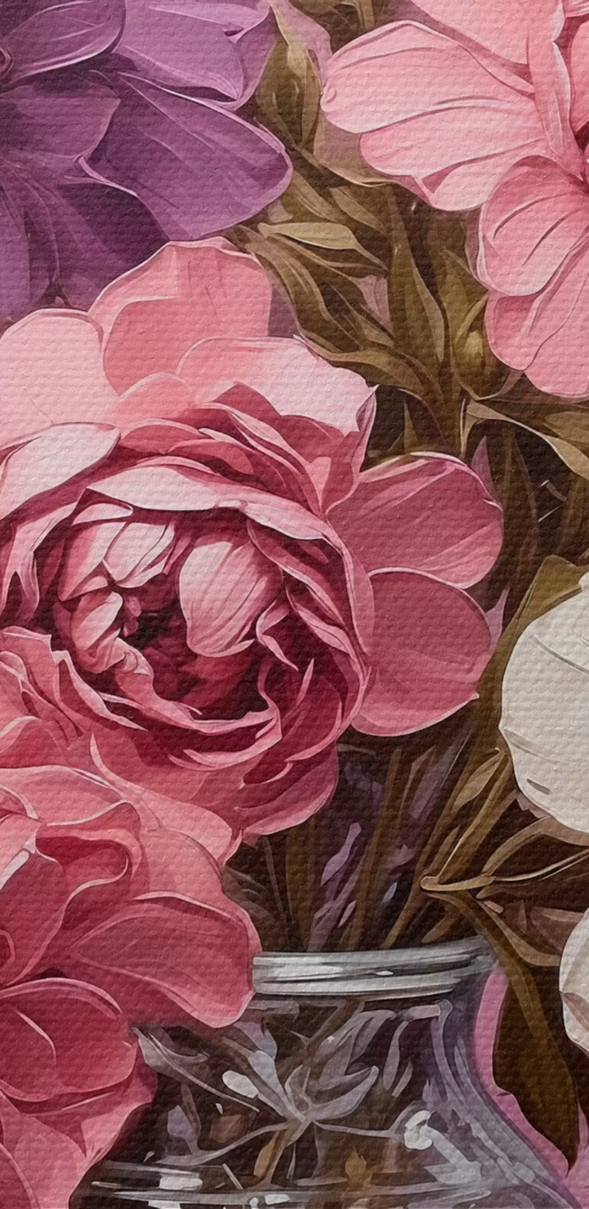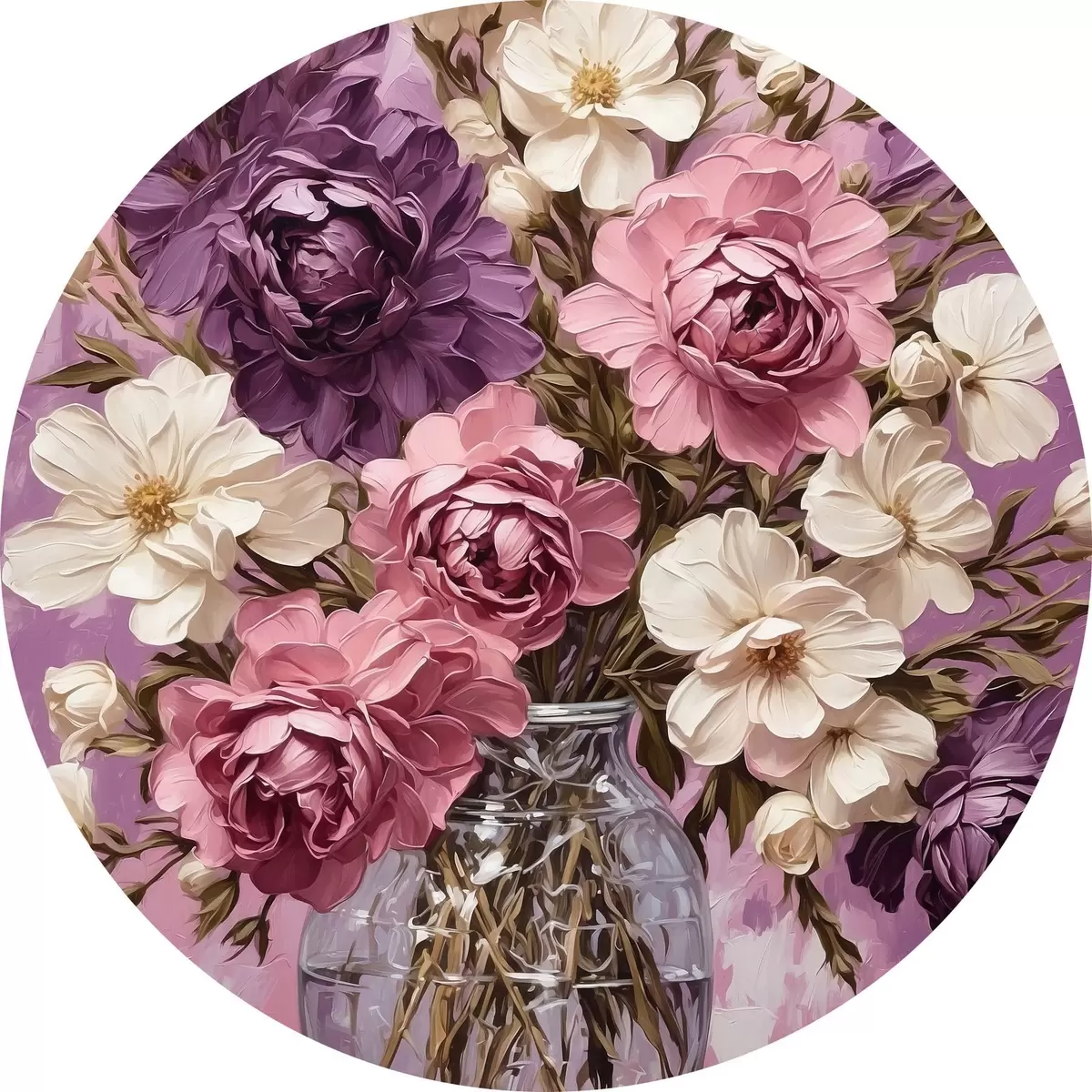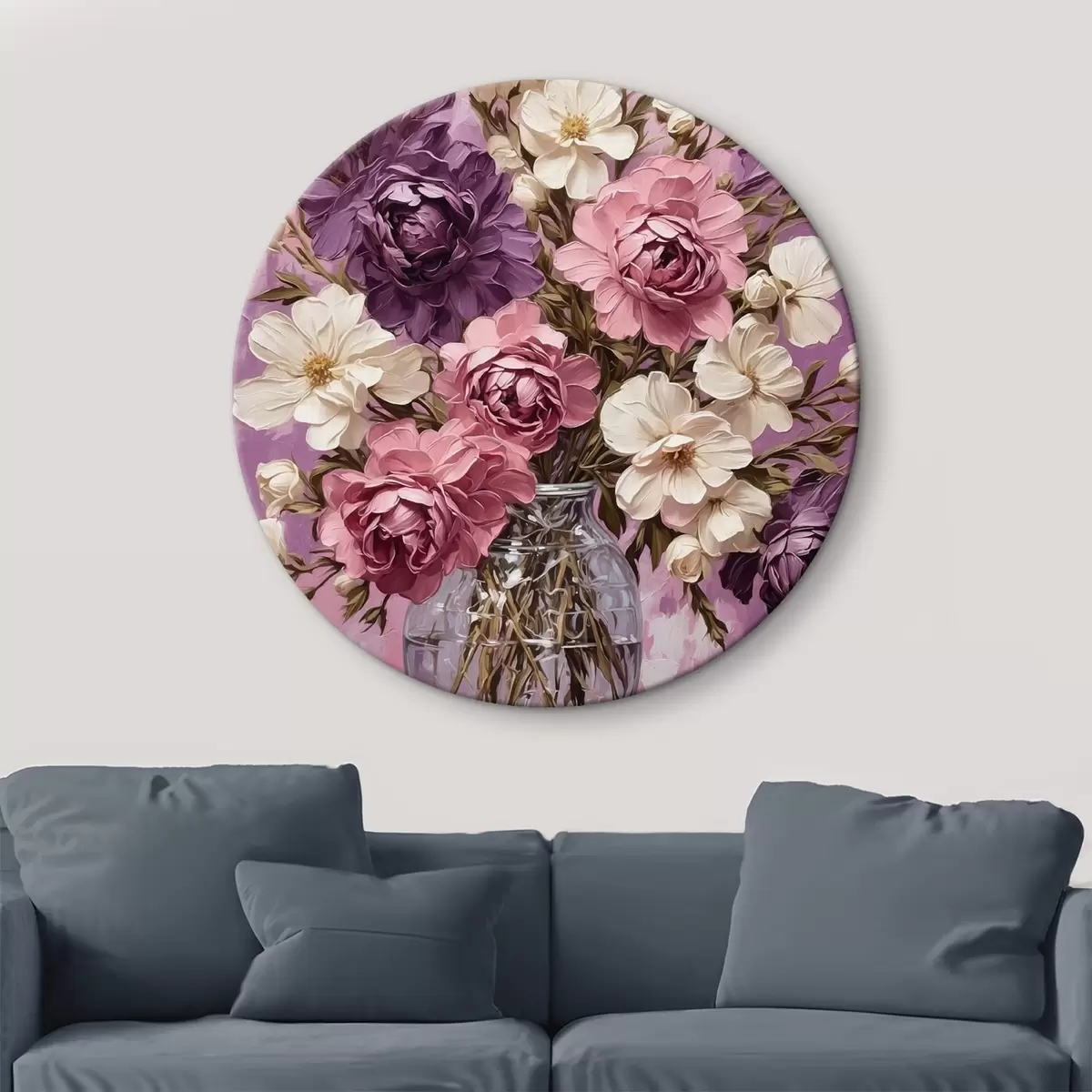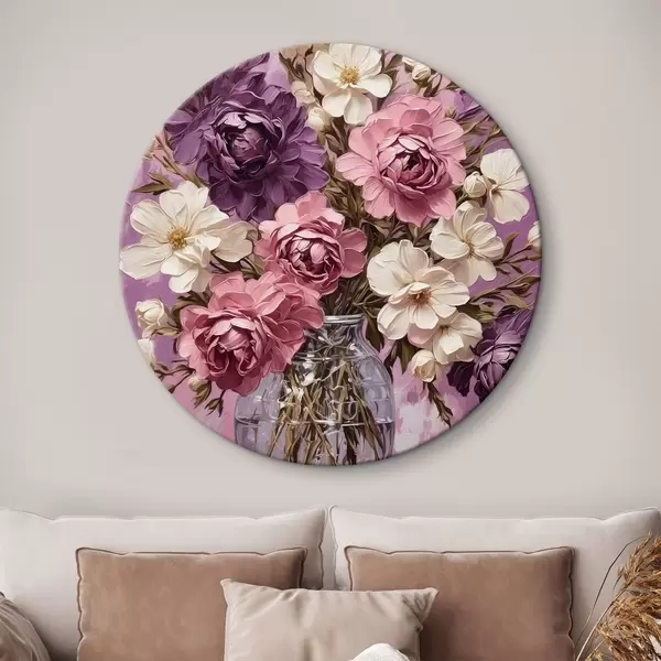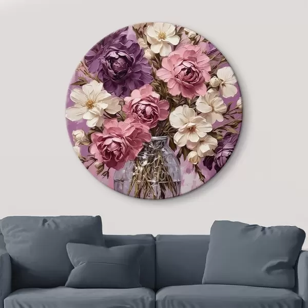 Pilt Lilled läbipaistvas vaasis lillasel taustal Nr r42535