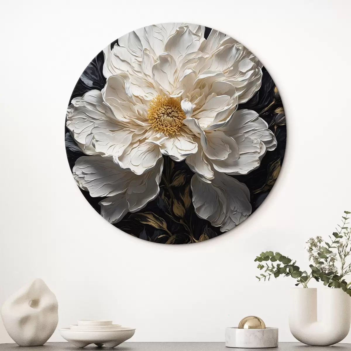Pilt Valge lill mustal taustal õlimaali stiilis Nr r42544