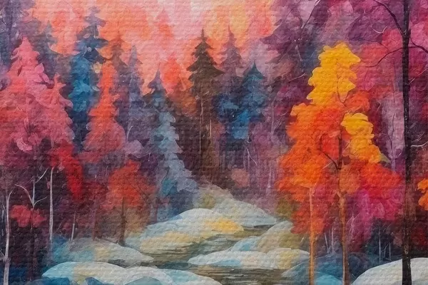 Pilt Mets talvel stiilis maalimine akvarelliga Nr r42549