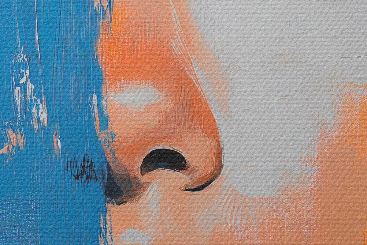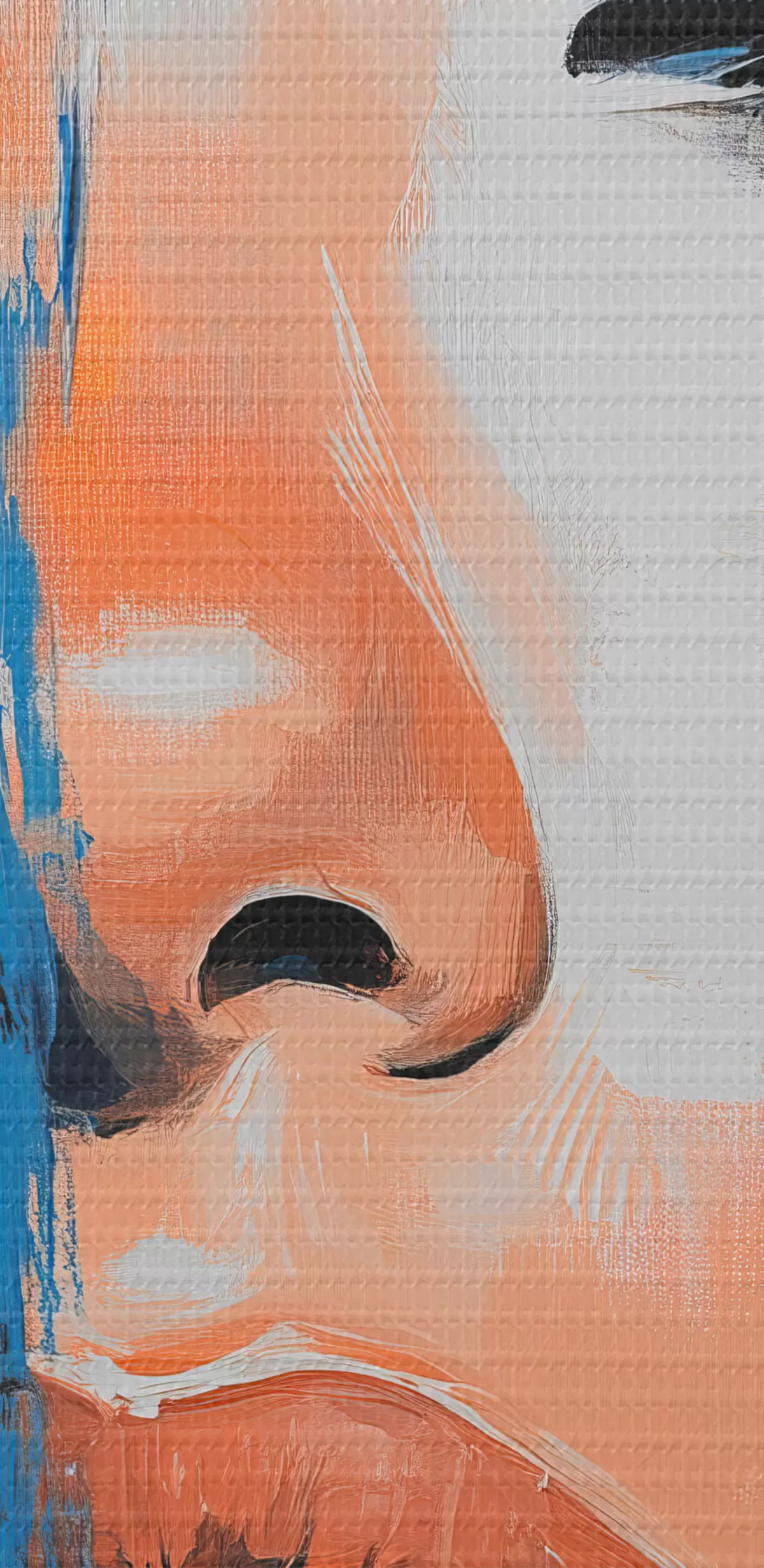 Selle lõuendi peenike niidipunus meenutab professionaalse kunstniku lõuendi pinda.