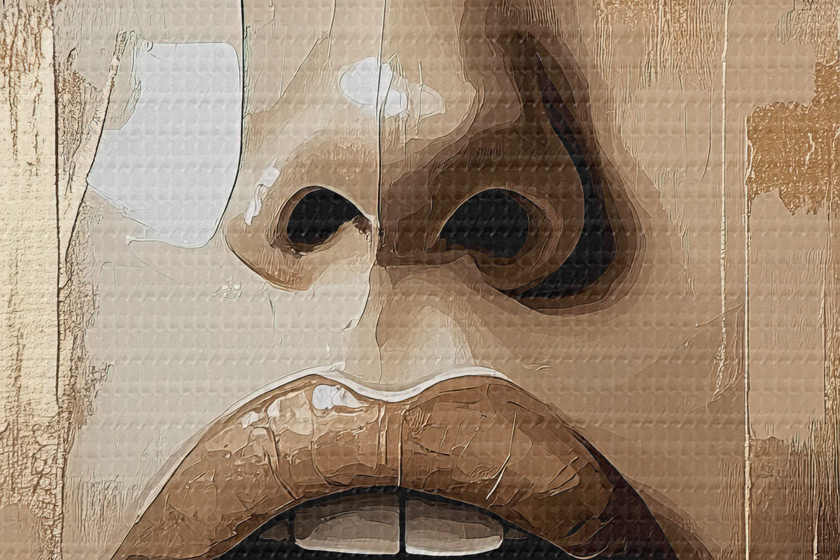 Selle lõuendi peenike niidipunus meenutab professionaalse kunstniku lõuendi pinda.