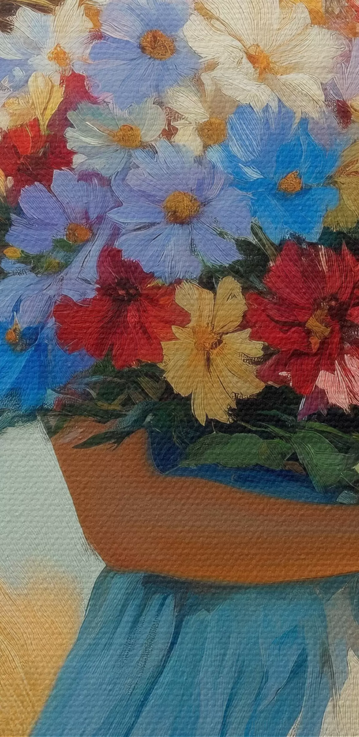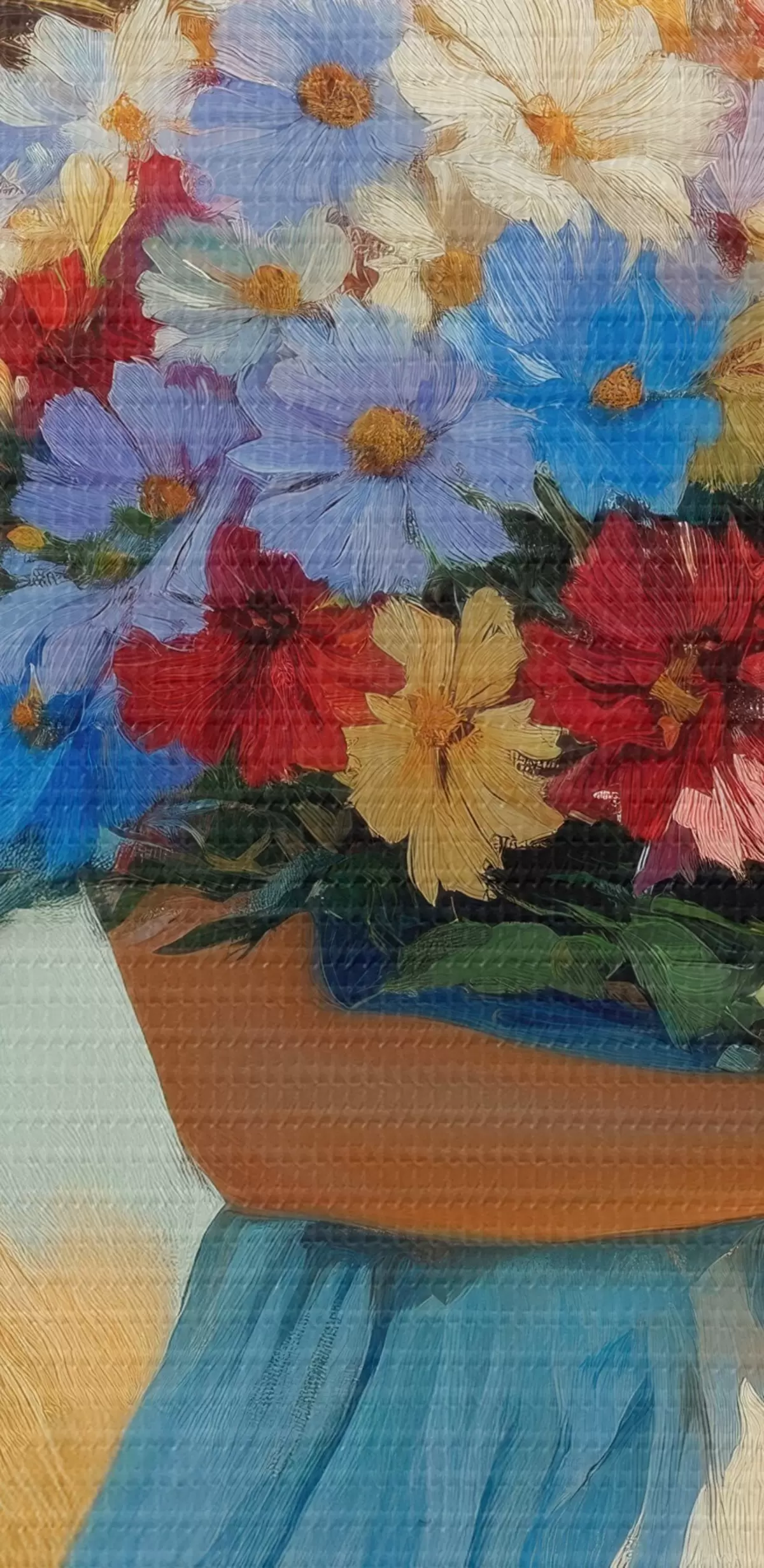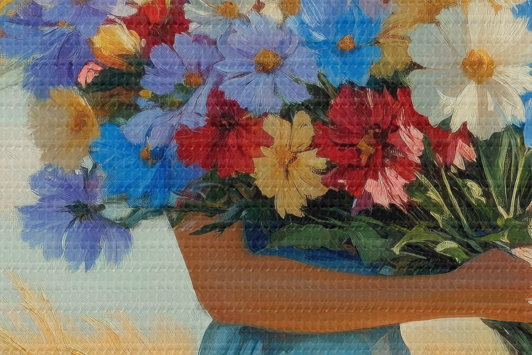 Selle lõuendi peenike niidipunus meenutab professionaalse kunstniku lõuendi pinda.