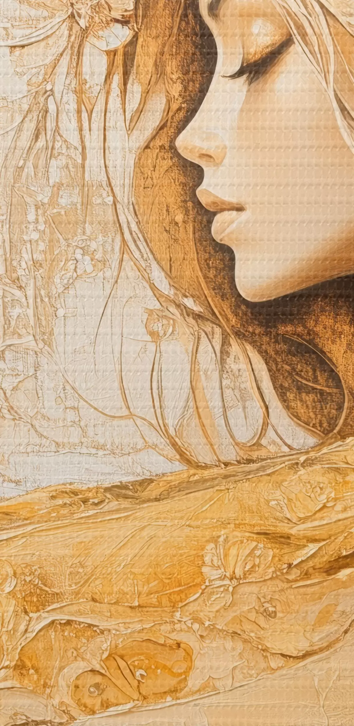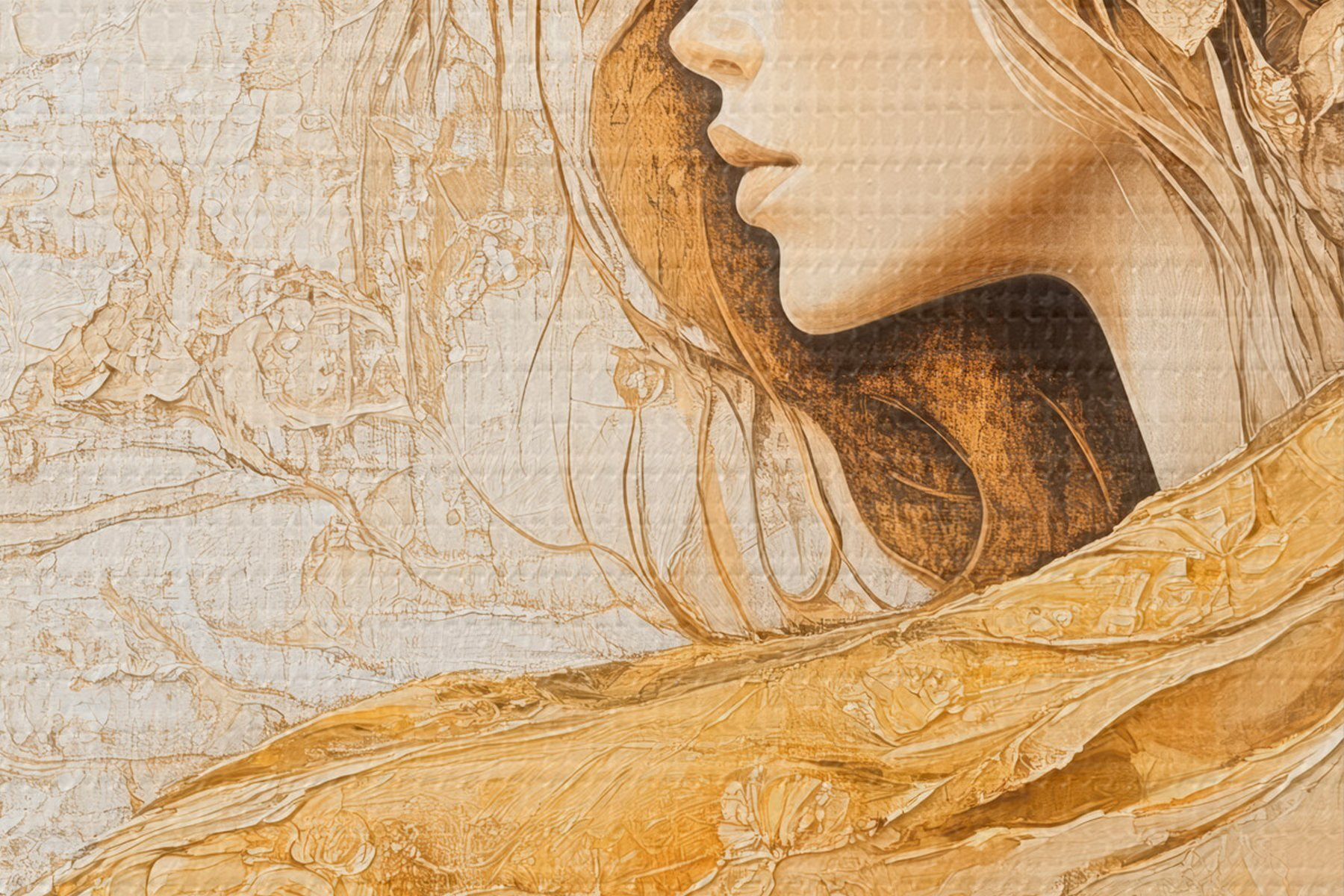 Selle lõuendi peenike niidipunus meenutab professionaalse kunstniku lõuendi pinda.