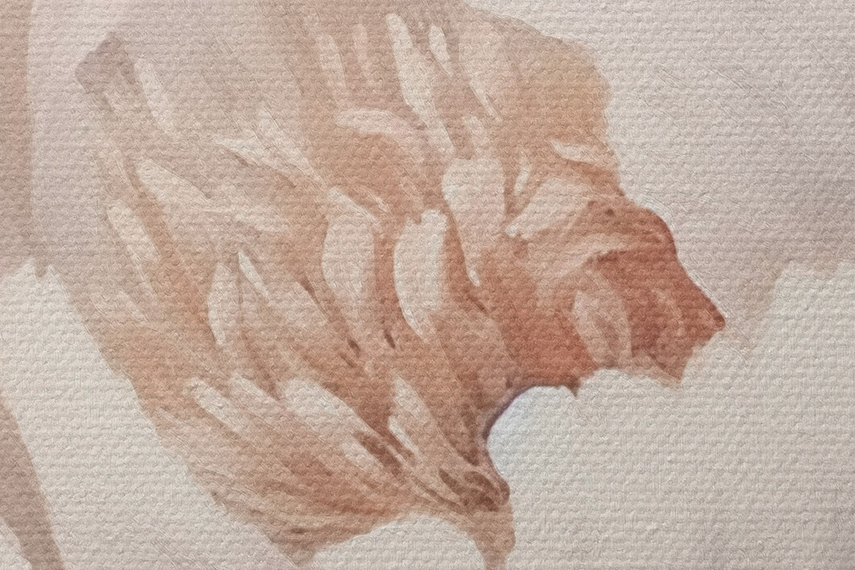 Selle lõuendi peenike niidipunus meenutab professionaalse kunstniku lõuendi pinda.