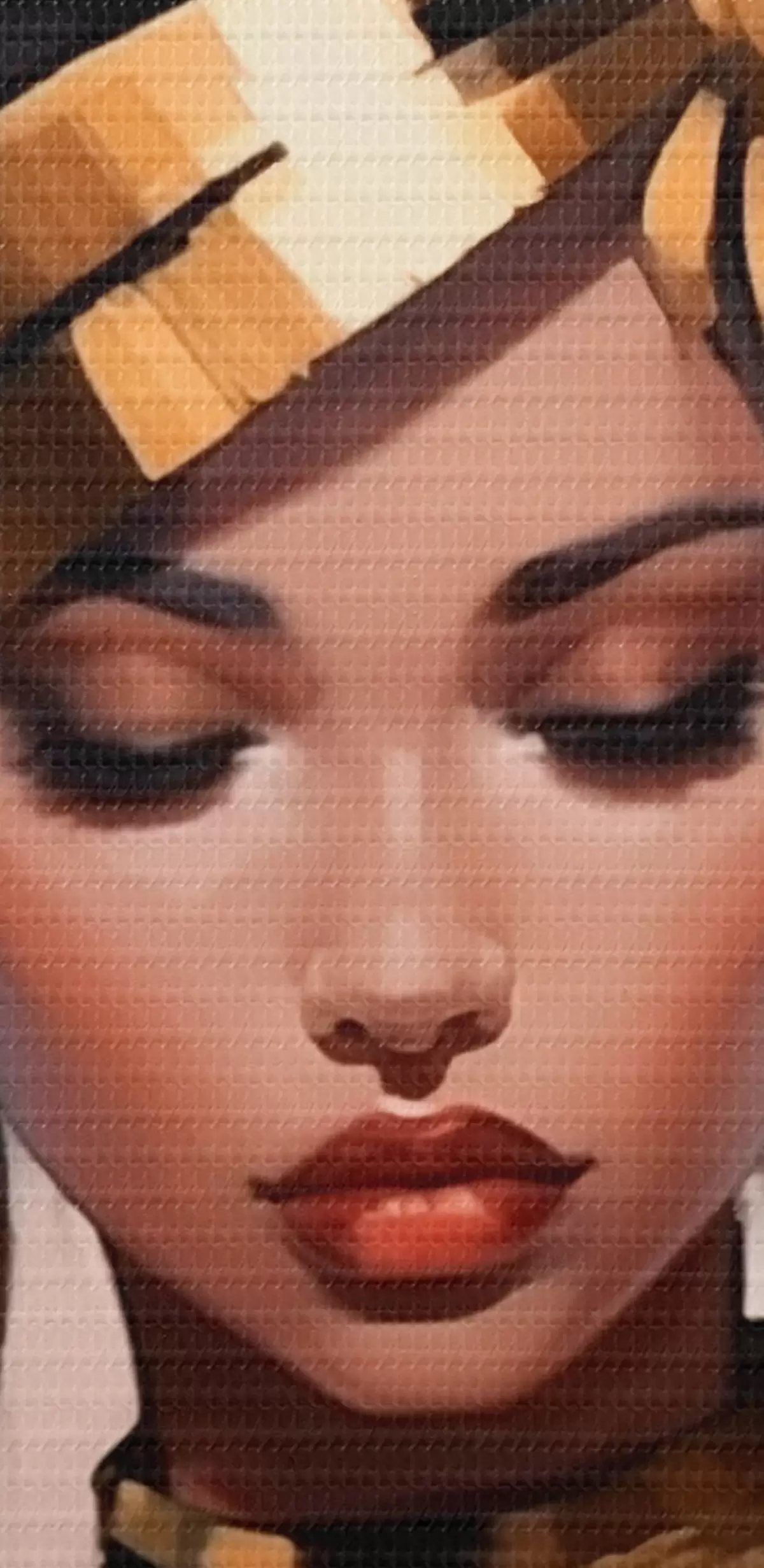 Selle lõuendi peenike niidipunus meenutab professionaalse kunstniku lõuendi pinda.