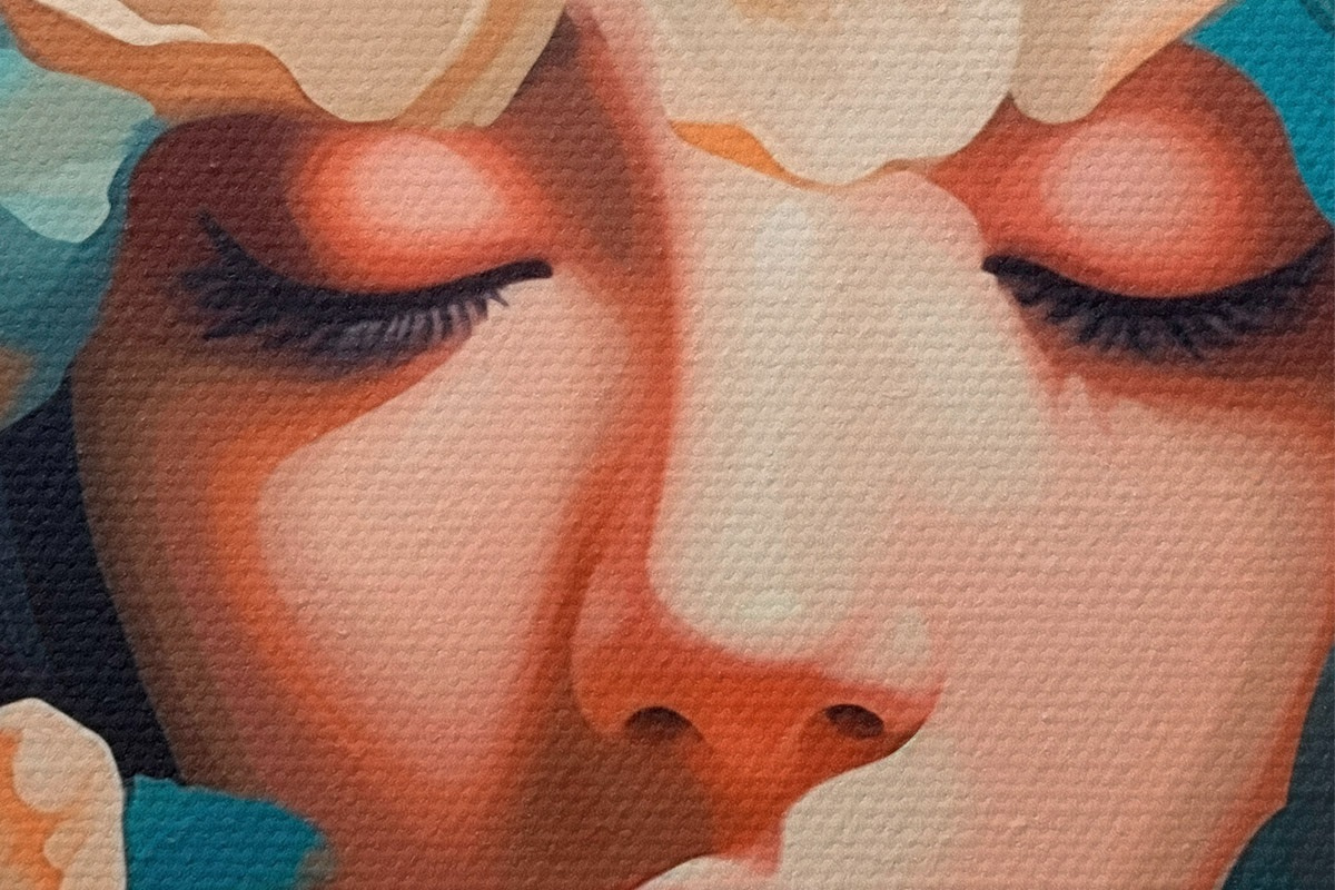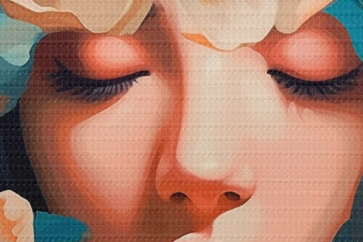 Selle lõuendi peenike niidipunus meenutab professionaalse kunstniku lõuendi pinda.
