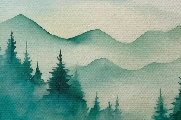 Pilt Udune maastik koos mägede ja metsaga Nr r42662