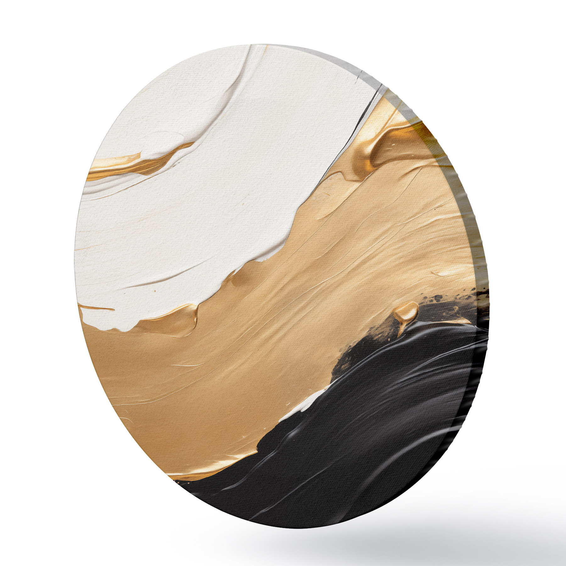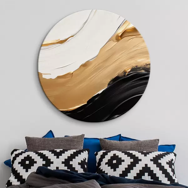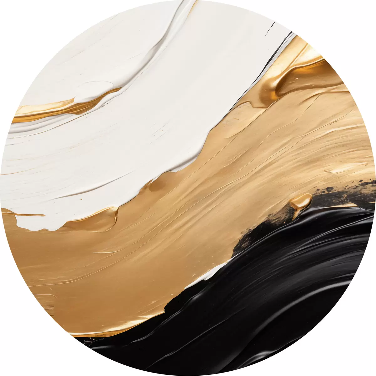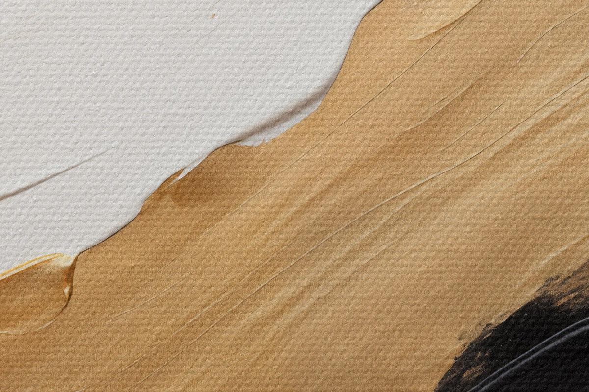 Pilt Abstraktne kompositsioon, mis sisaldab julgeid valge, kollase ja musta värvi värke Nr r42717
