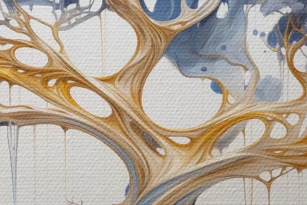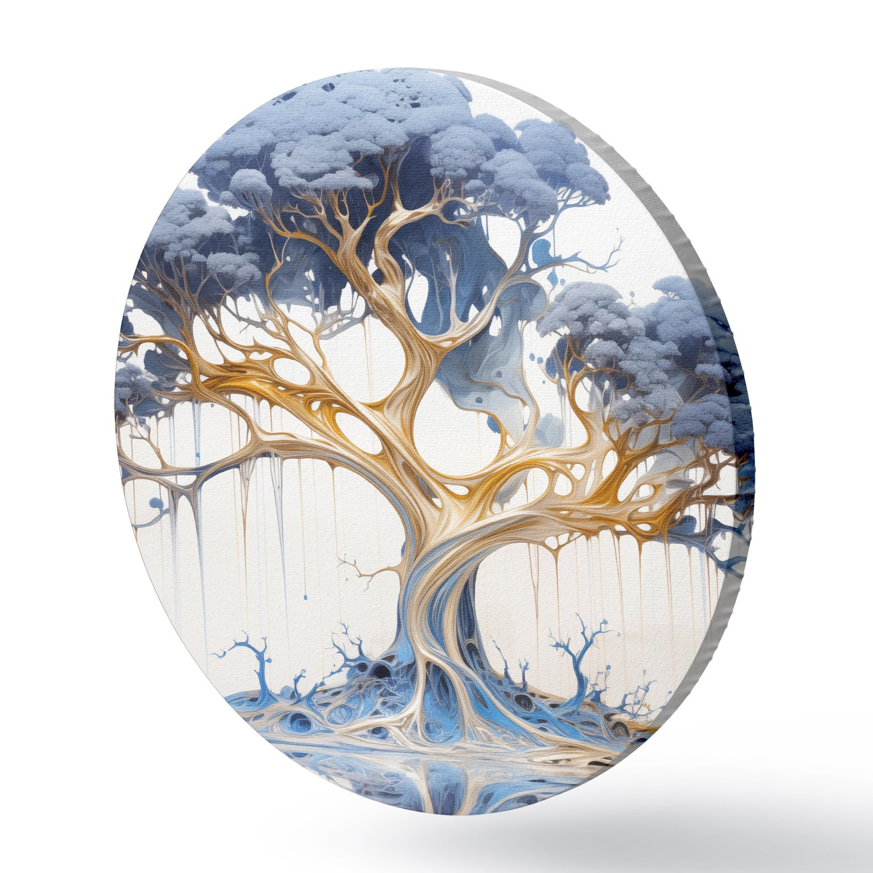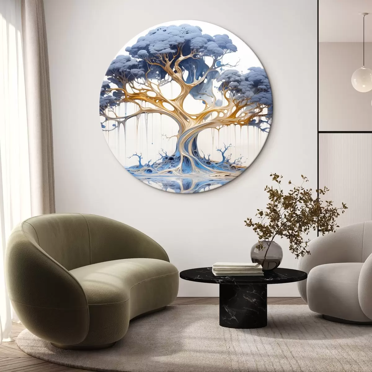 Pilt Stiliseeritud puu keeruliste okste ja lehtedega, millel on siniste ja kollaste toonide segu Nr r42722