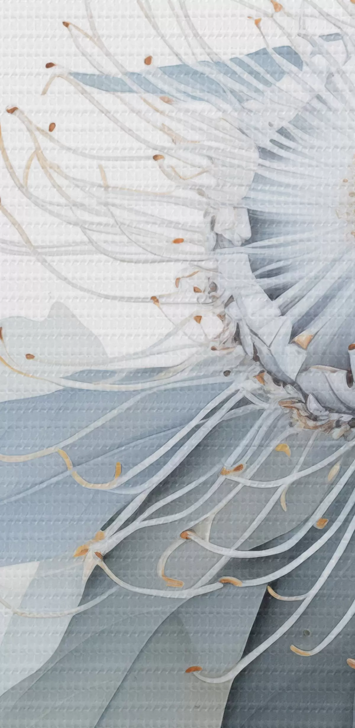 Selle lõuendi peenike niidipunus meenutab professionaalse kunstniku lõuendi pinda.