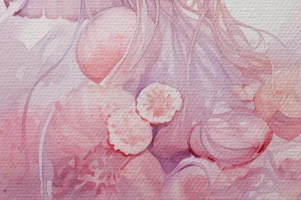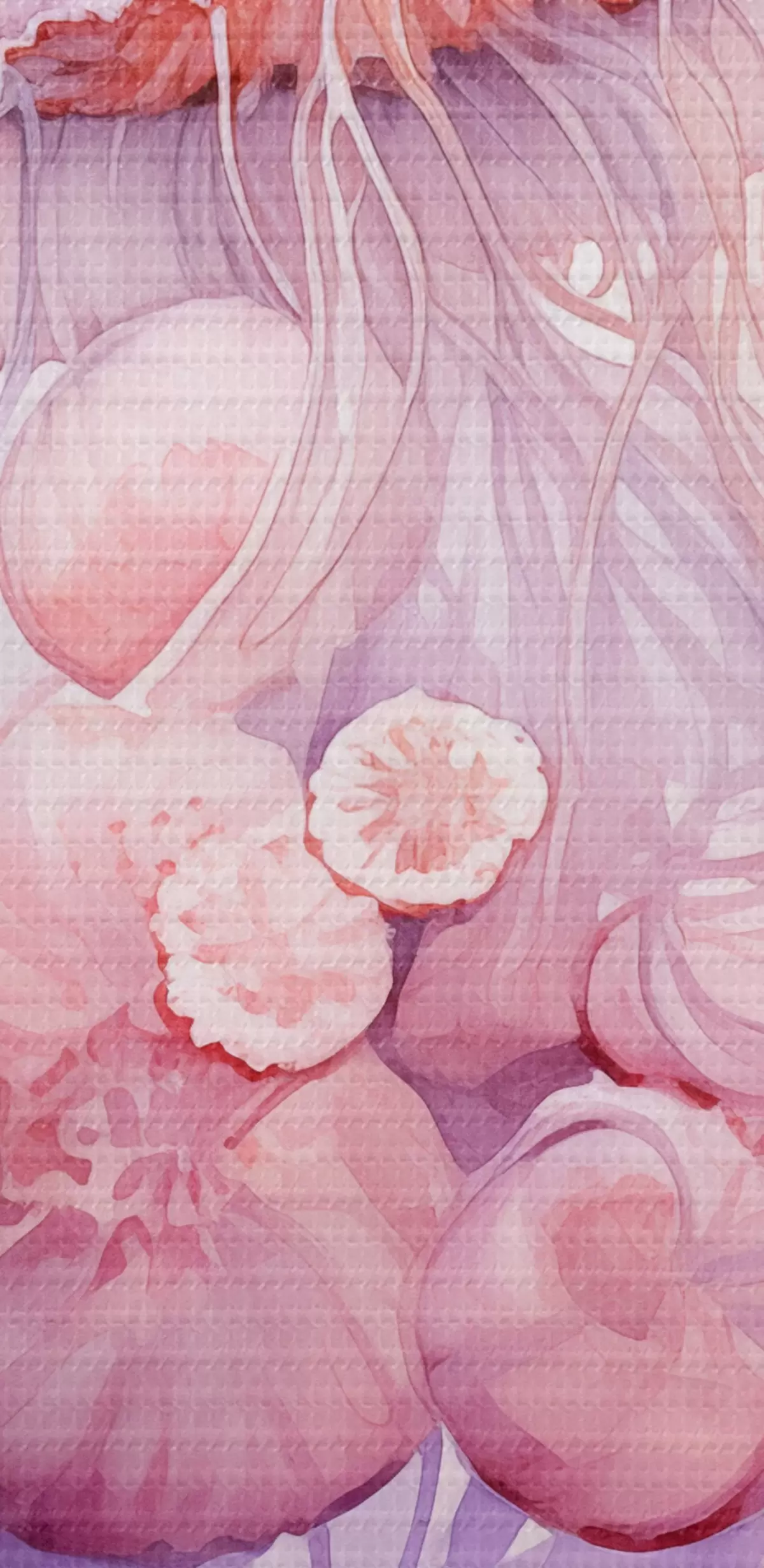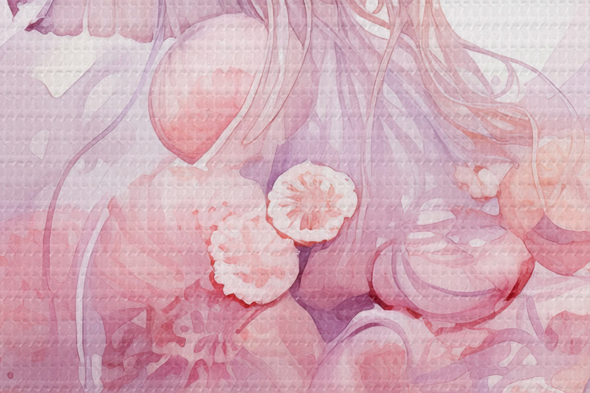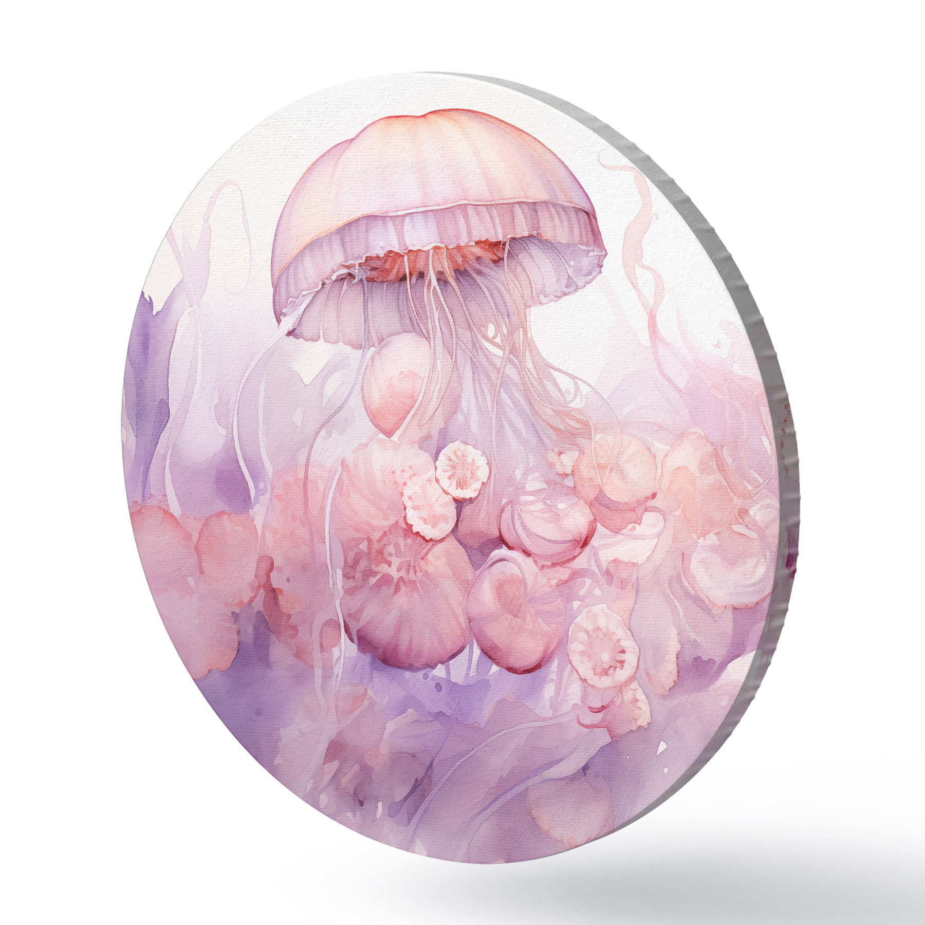 Pilt Roosa meduus, mis hõljub pehmete roosade ja lillade toonide keerises, ümbritsetud abstraktsete kujunditega Nr r42730