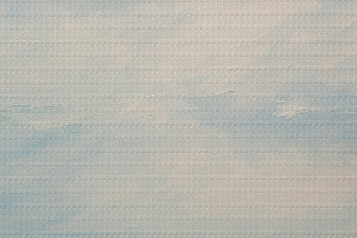 Selle lõuendi peenike niidipunus meenutab professionaalse kunstniku lõuendi pinda.