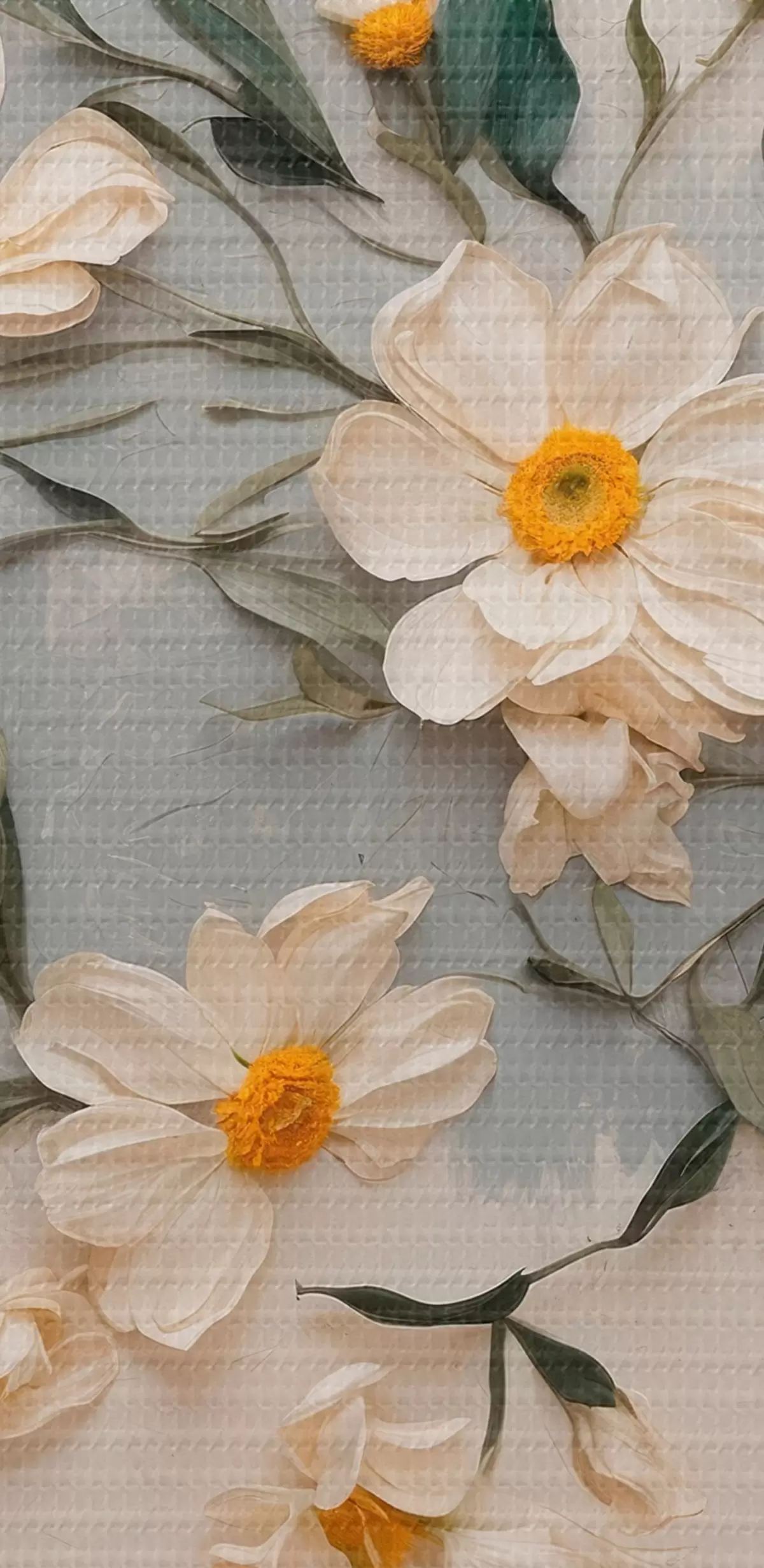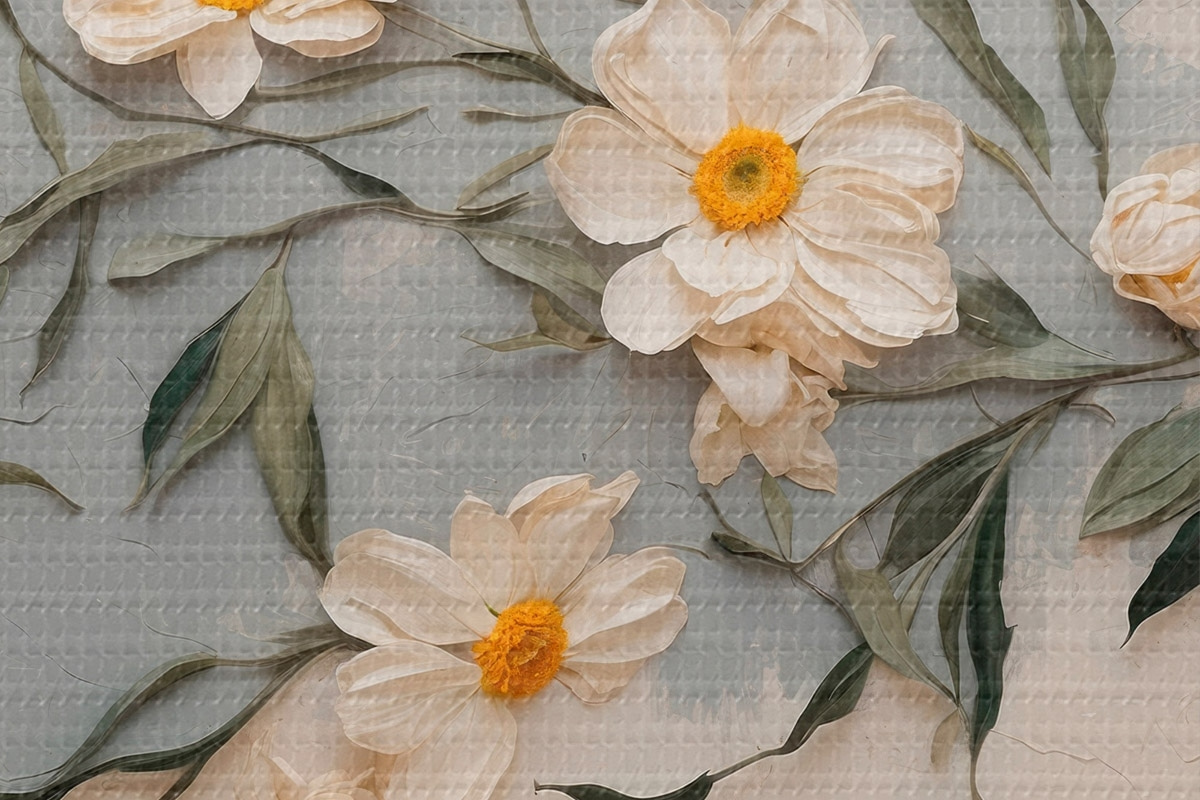 Pilt Valge lilleõis ja leever valge ja halli taustaga Nr r42764