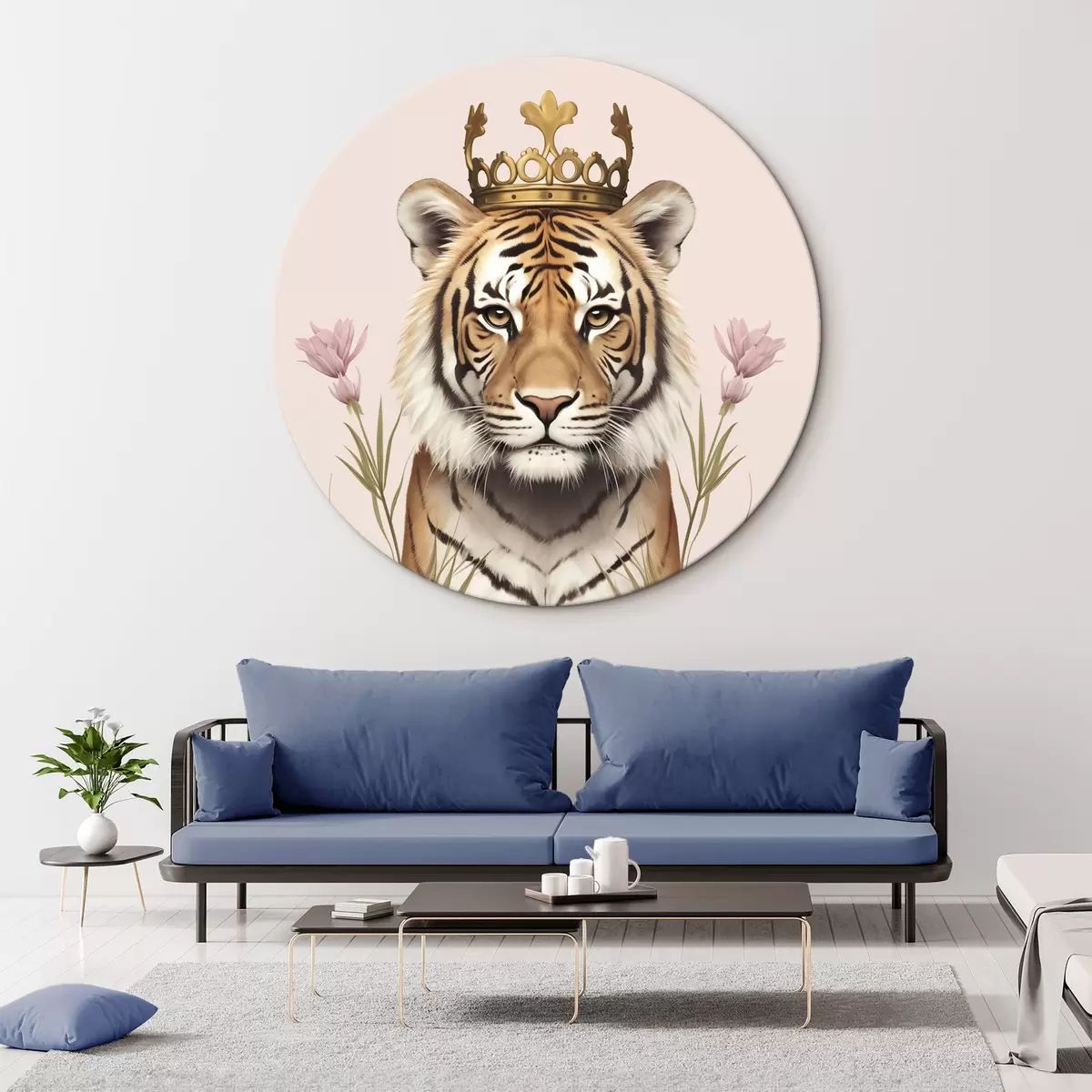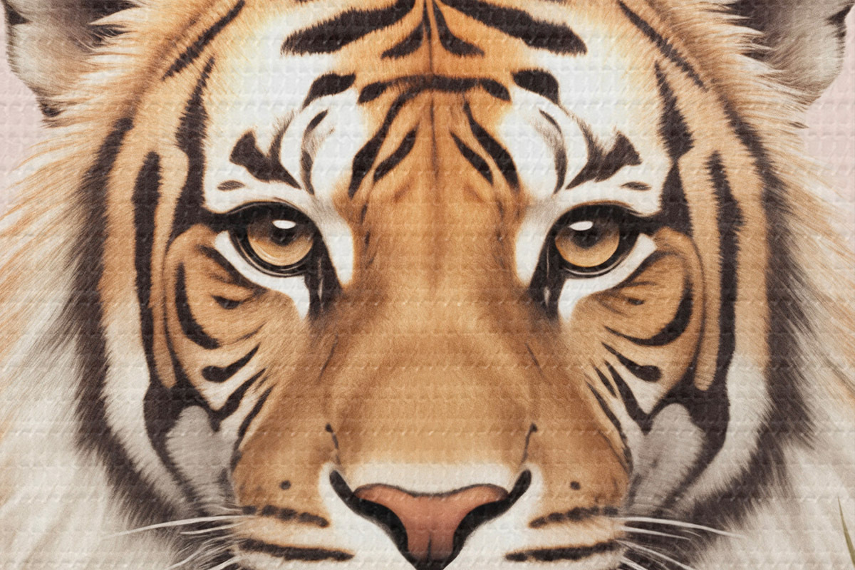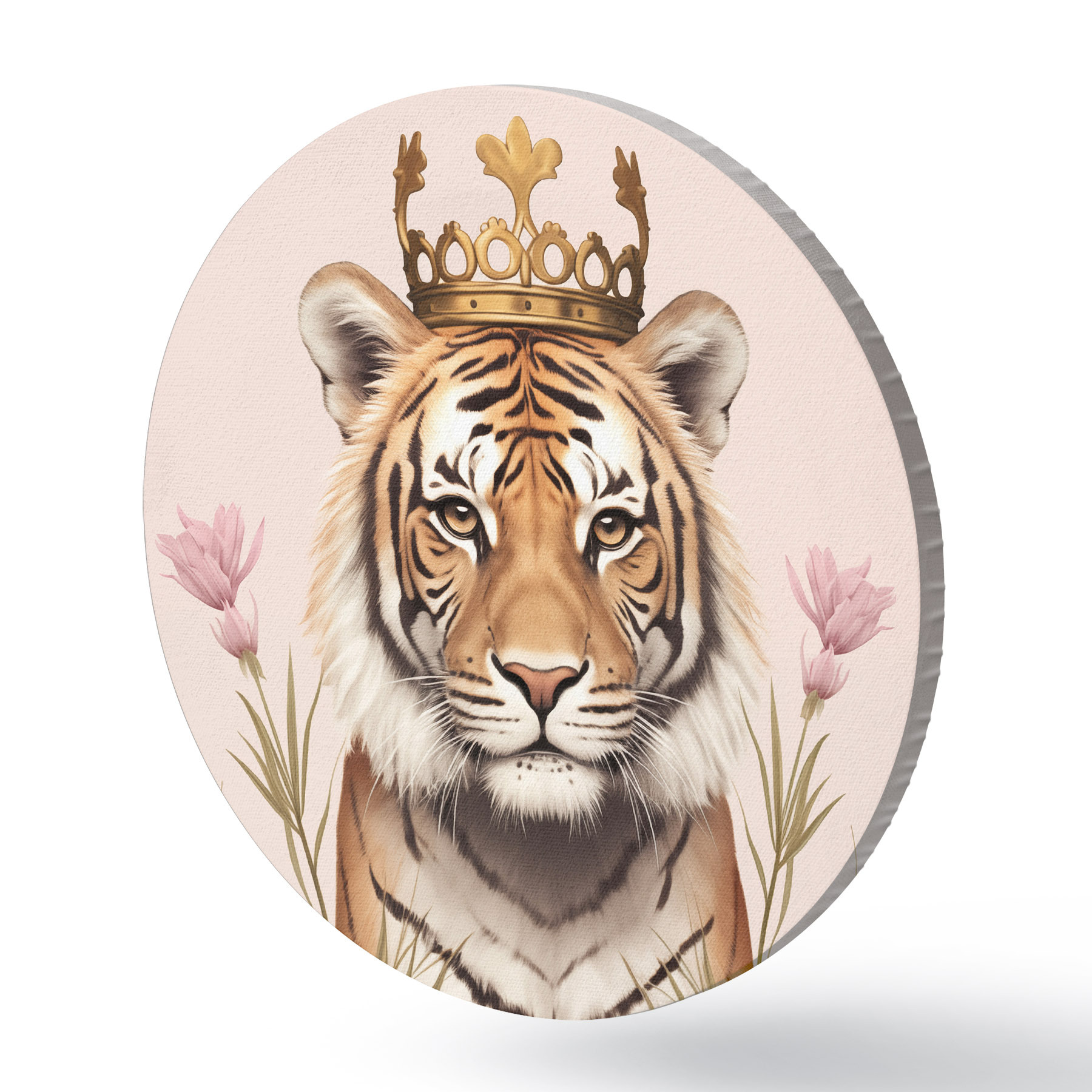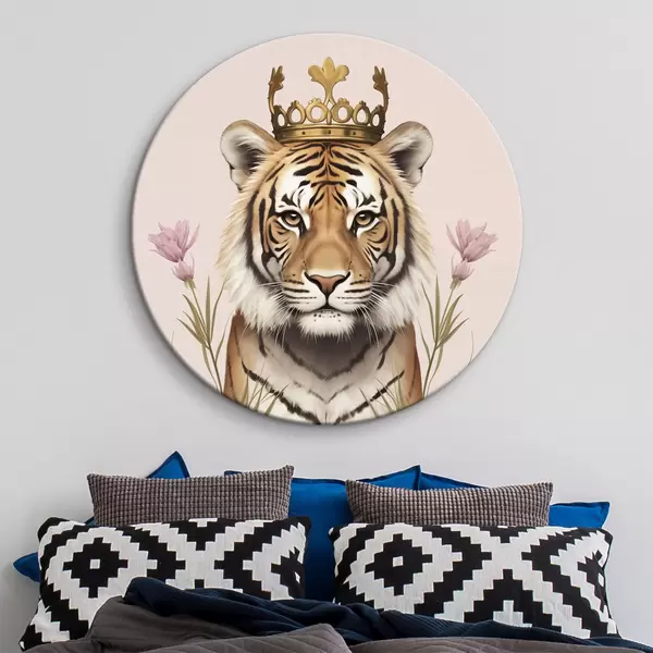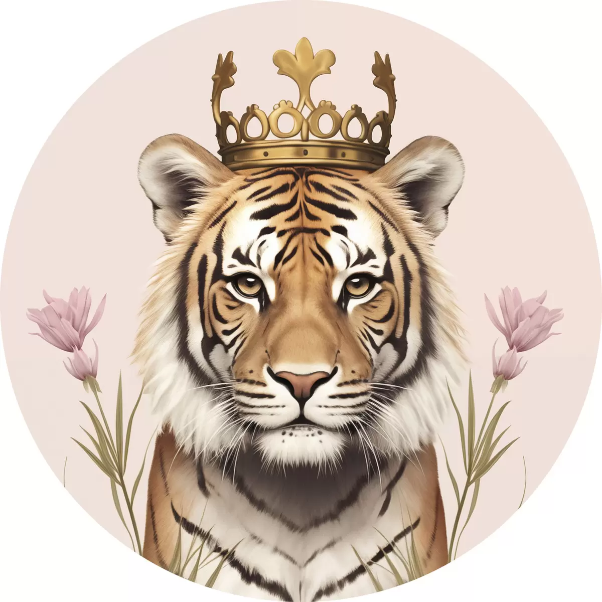 Pilt Krooniga tiiger, roosa taust, tulbid Nr r42782