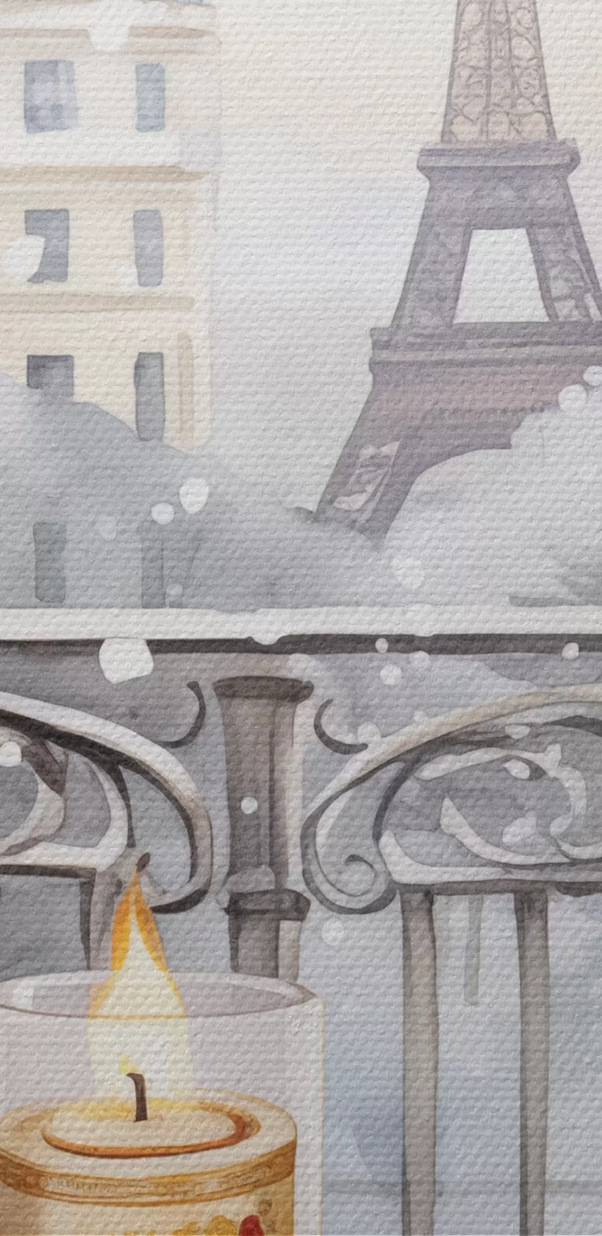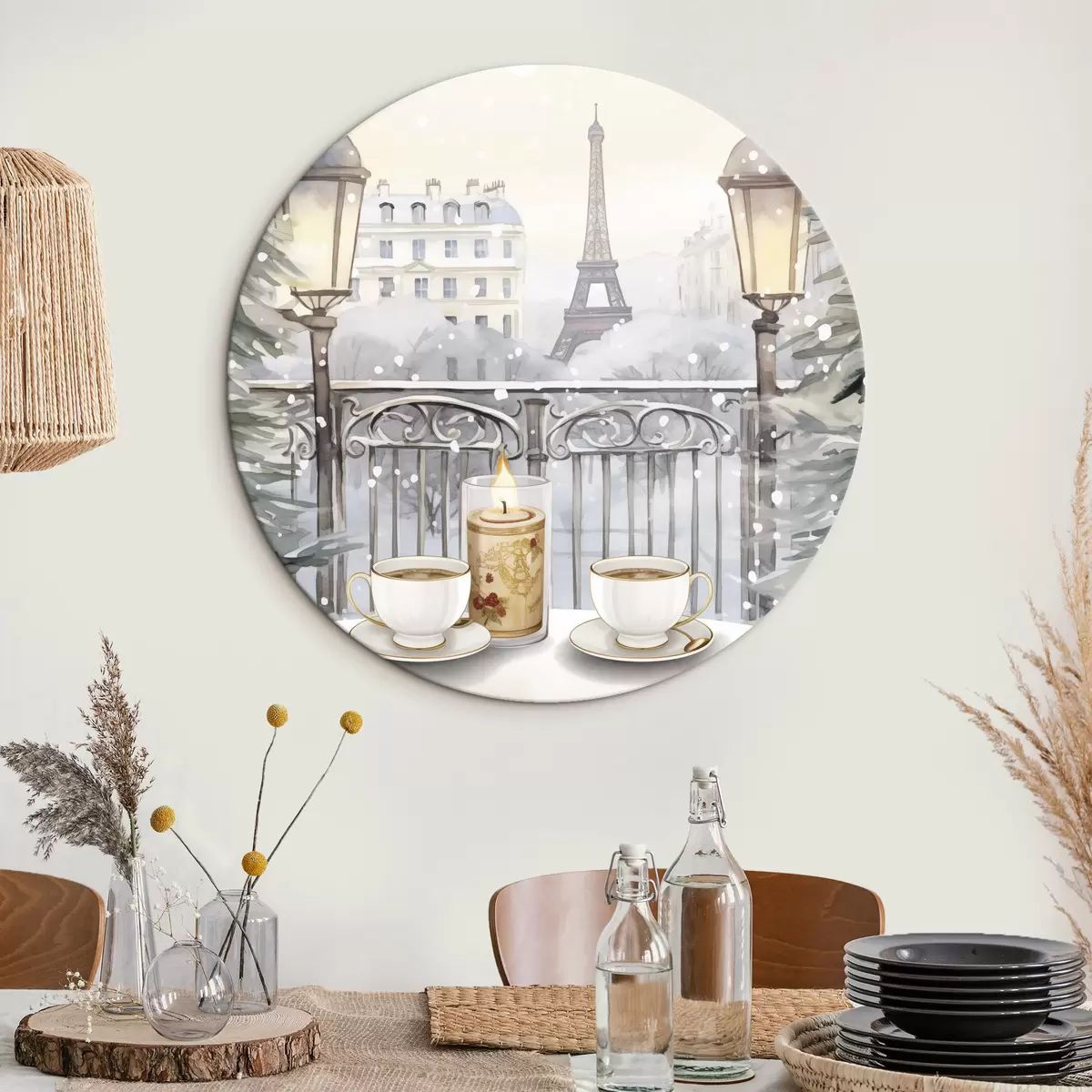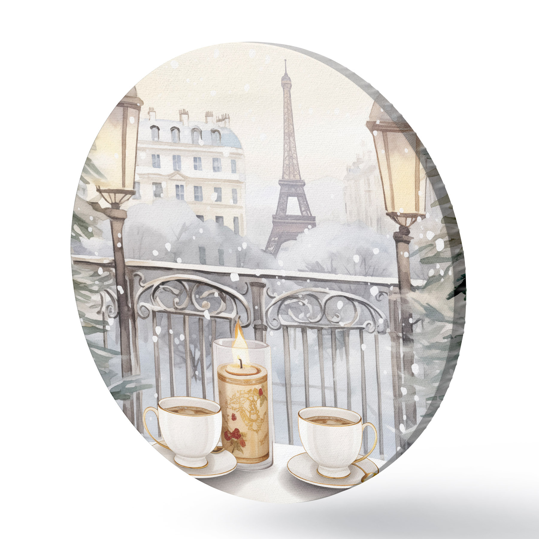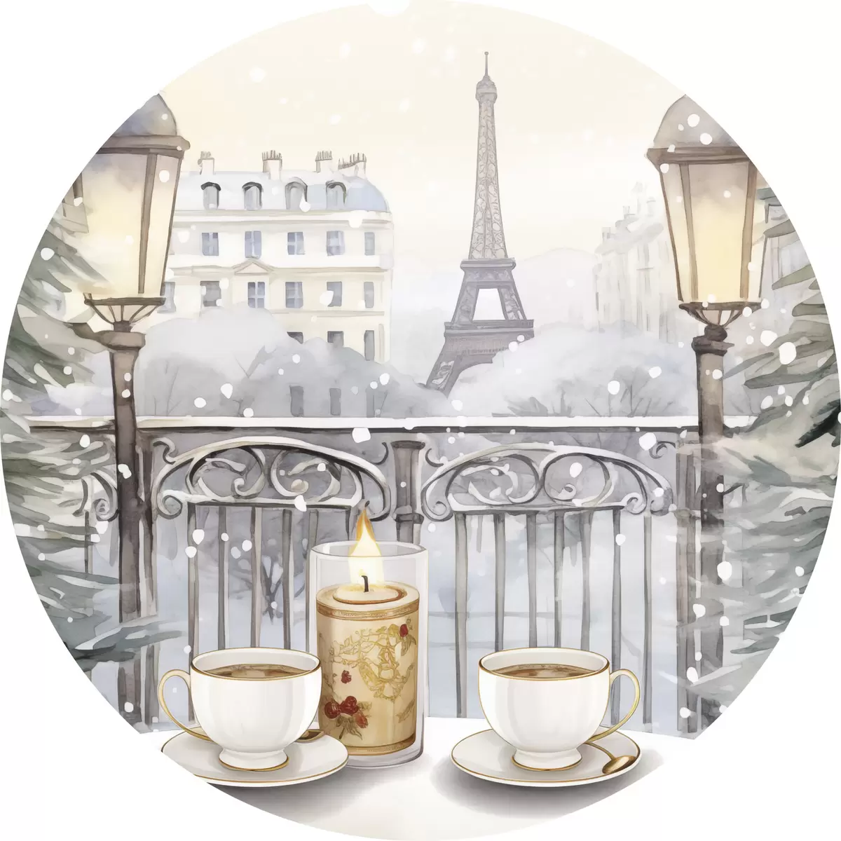 Ümmargused maalid Kaunis kohvik Pariisis, teetassid, romantiline vaade, talv, akvarellistiil r42799