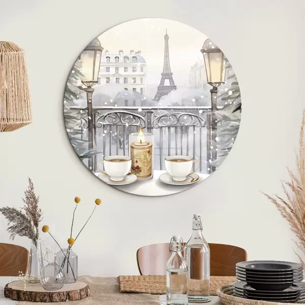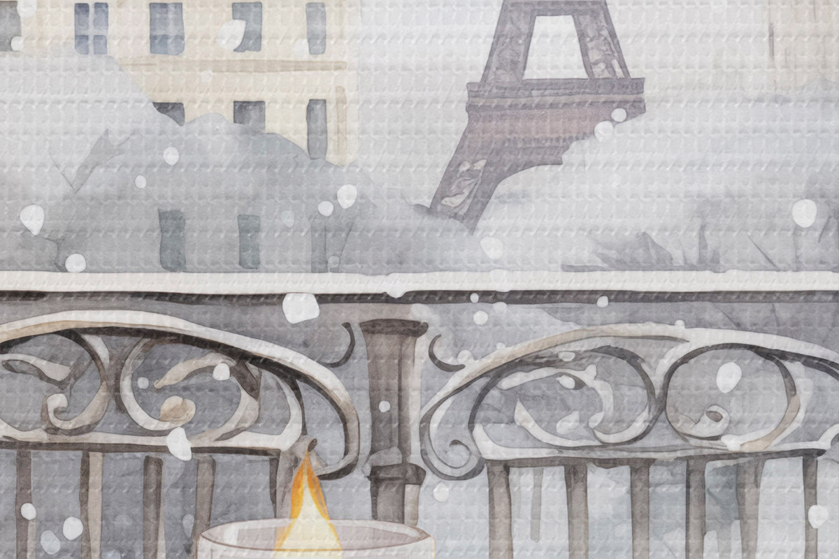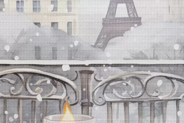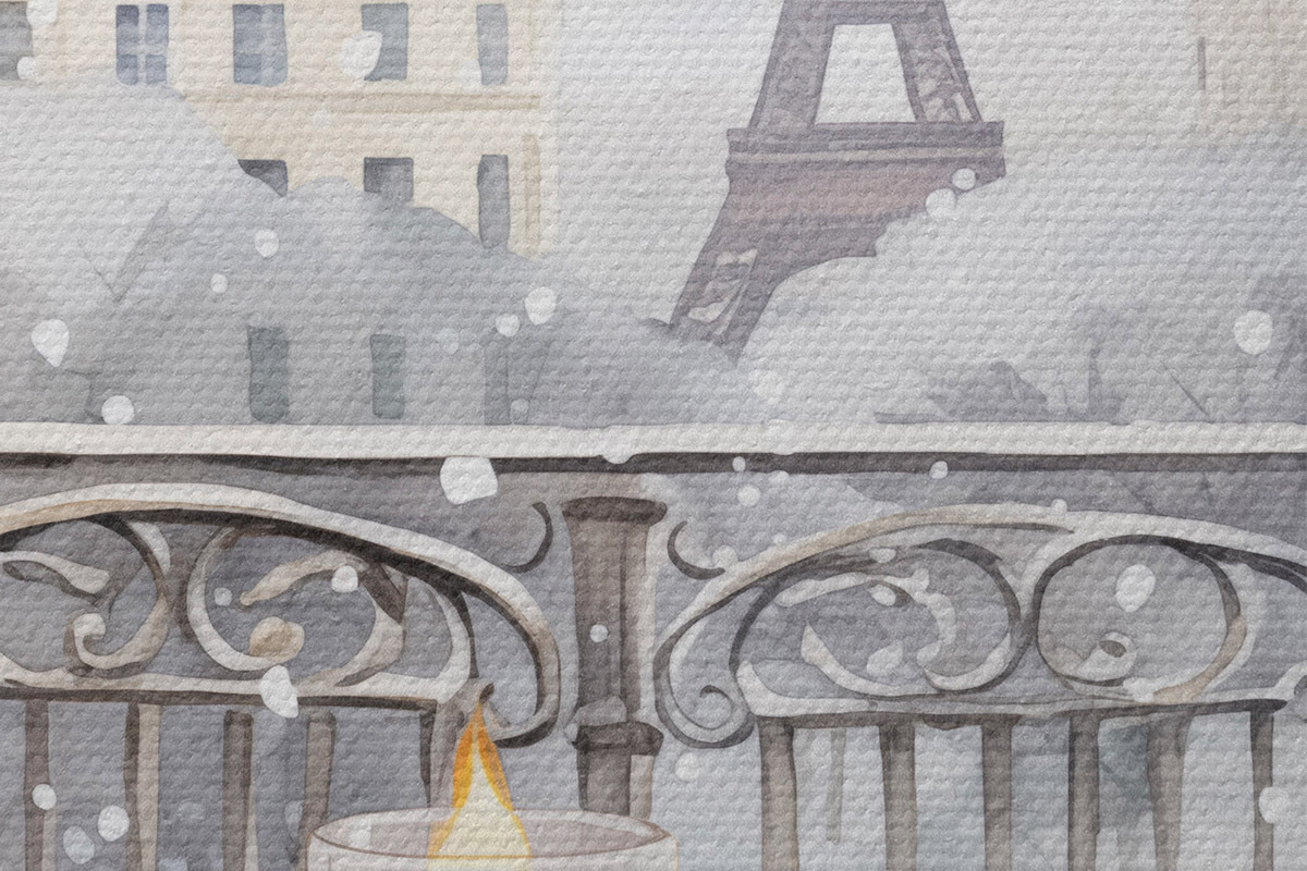 Pilt Kaunis kohvik Pariisis, teetassid, romantiline vaade, talv, akvarellistiil Nr r42799