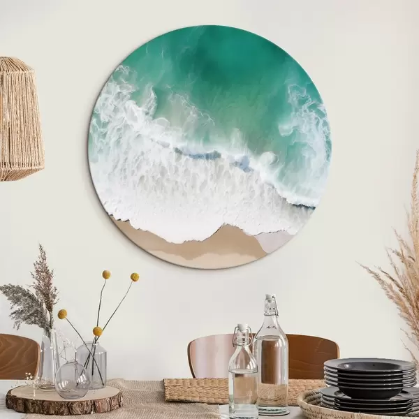 Pilt Õhuvaade mereäärsest rannast, kus türkiissinised lained rulluvad õrnalt liivarannale Nr r42930