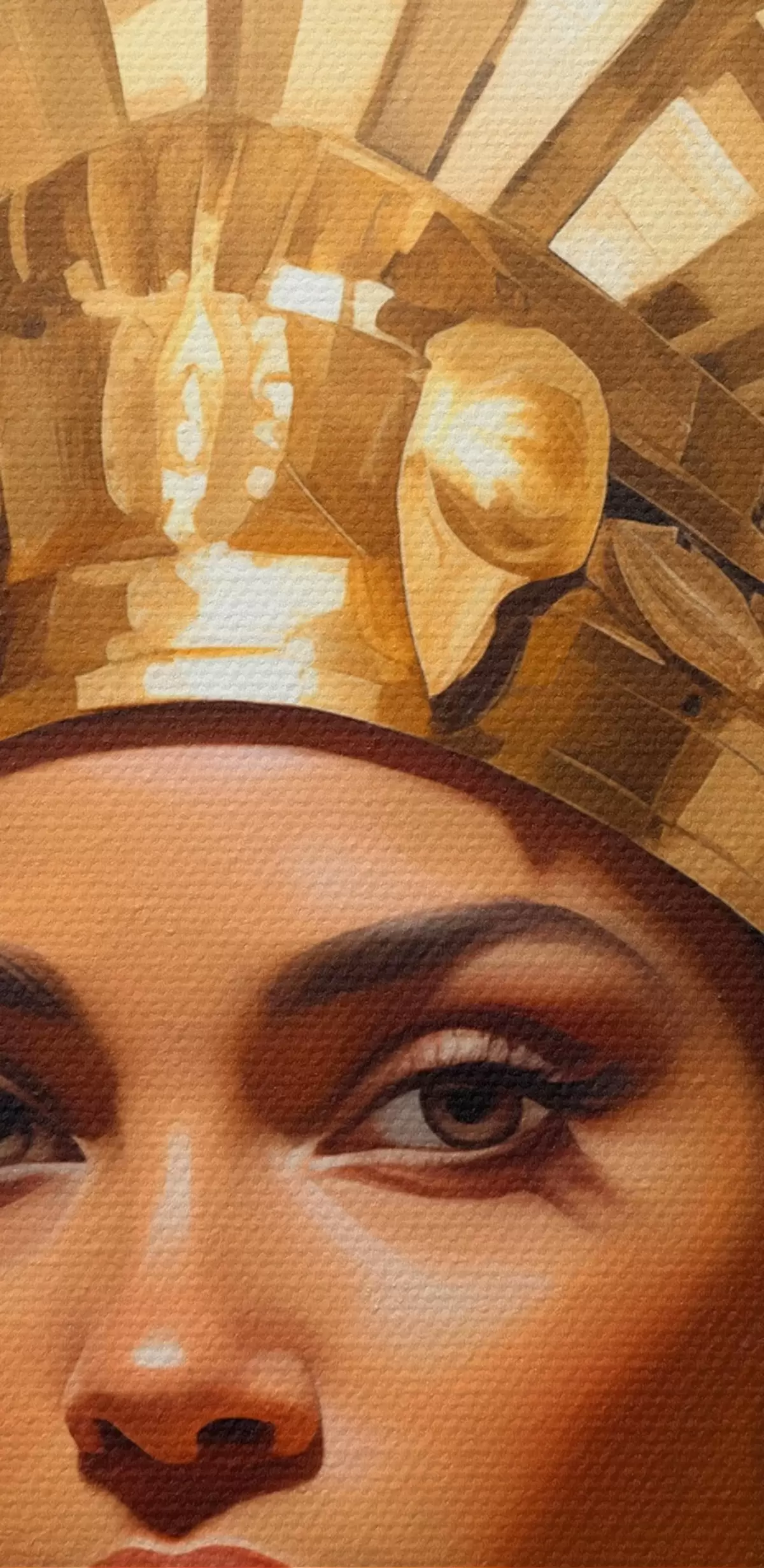 Selle lõuendi peenike niidipunus meenutab professionaalse kunstniku lõuendi pinda.