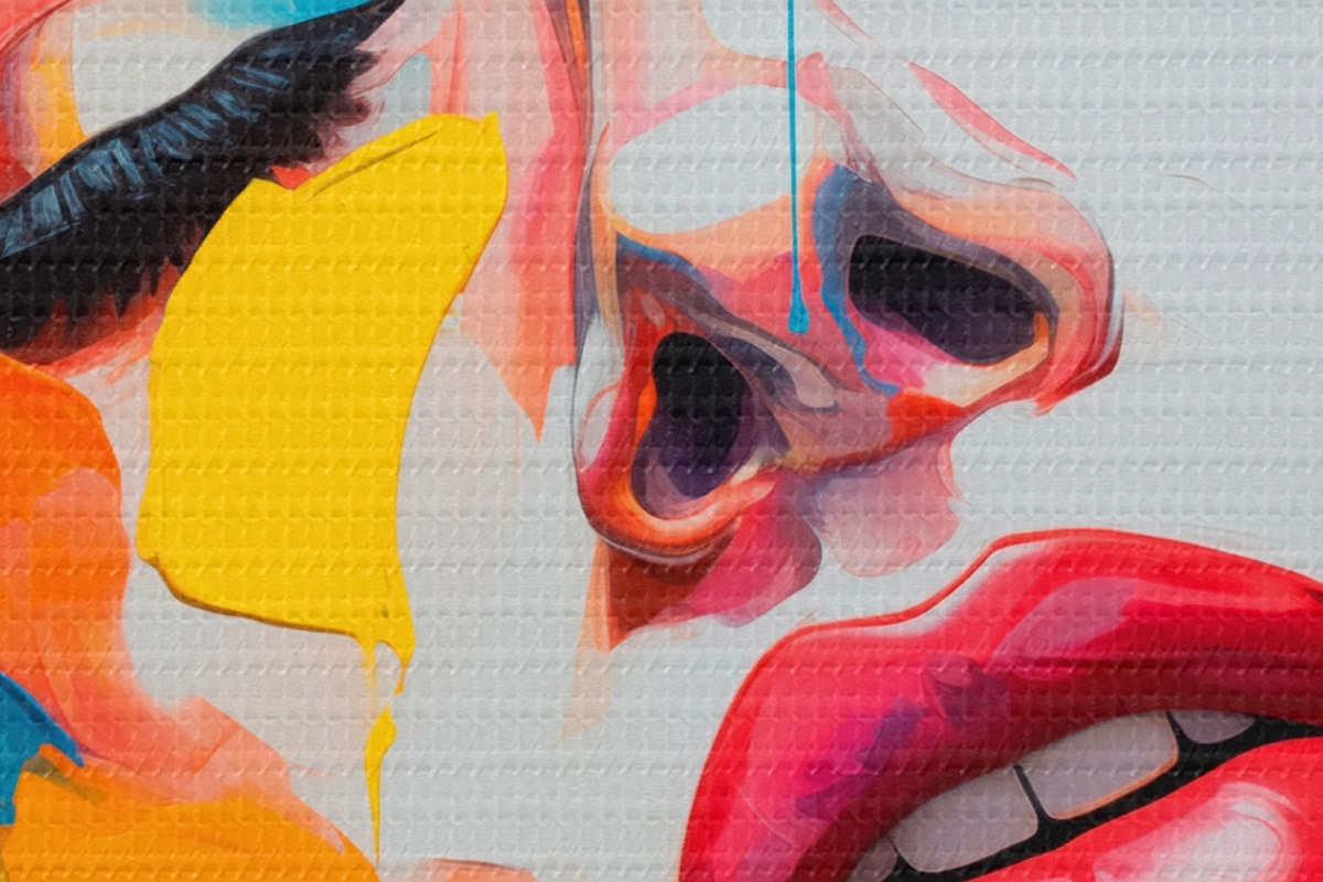 Selle lõuendi peenike niidipunus meenutab professionaalse kunstniku lõuendi pinda.