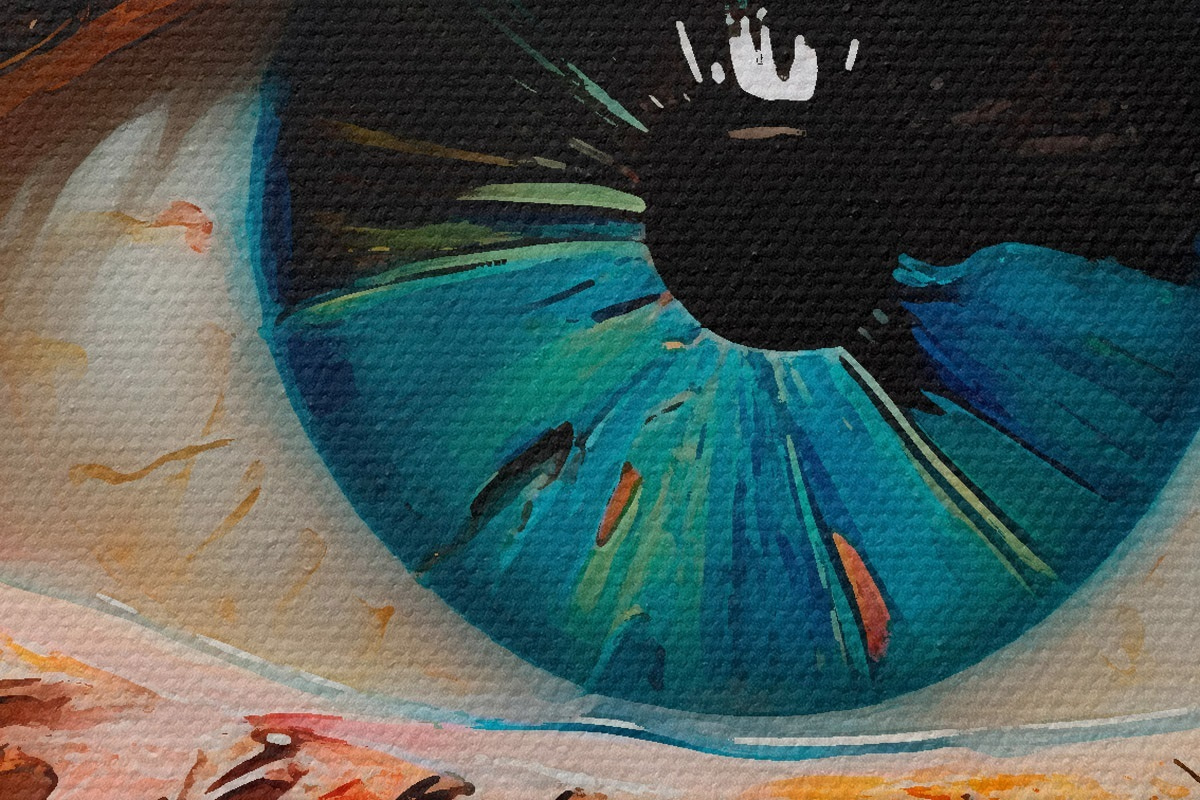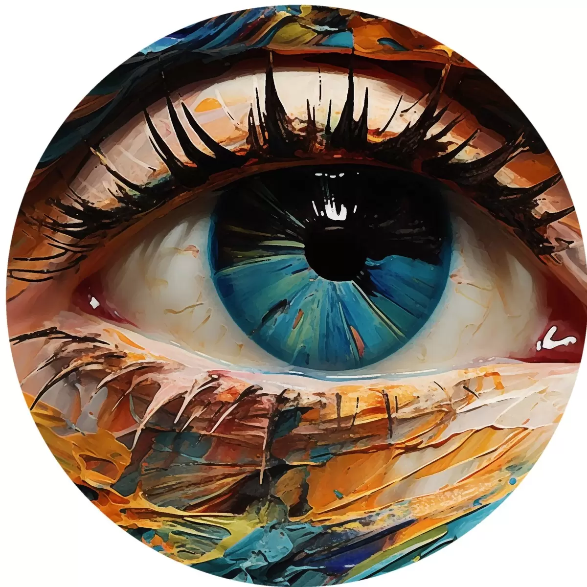 Pilt Abstraktne silmaportree elavatest värvidest, tekstuurse maalimise efektiga Nr r42938