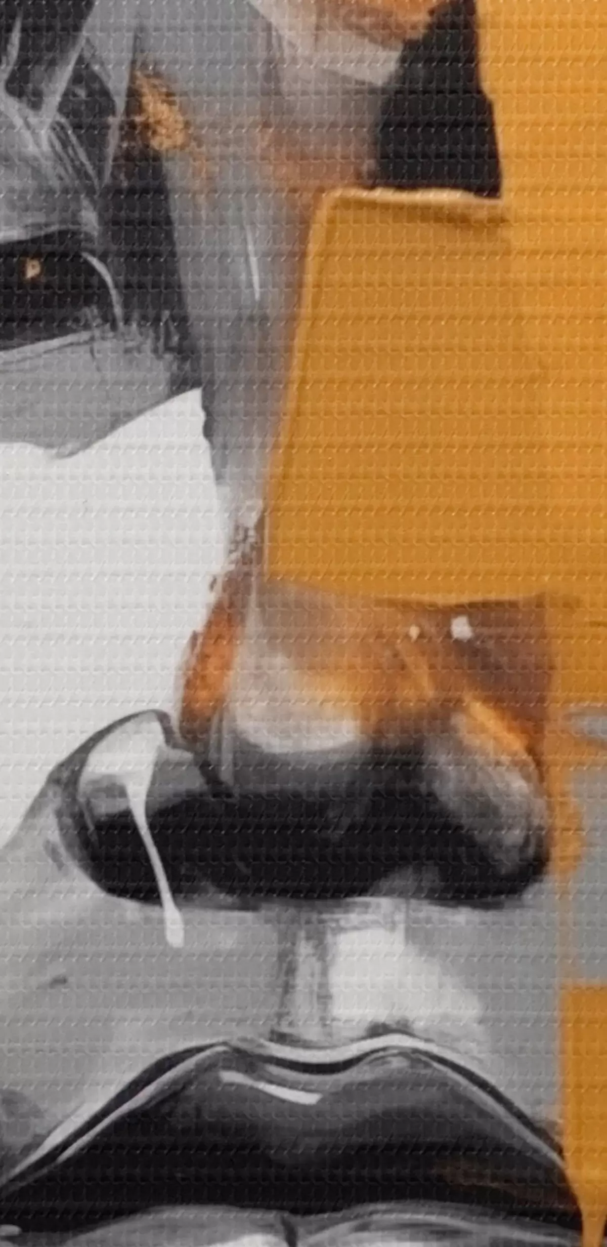 Selle lõuendi peenike niidipunus meenutab professionaalse kunstniku lõuendi pinda.