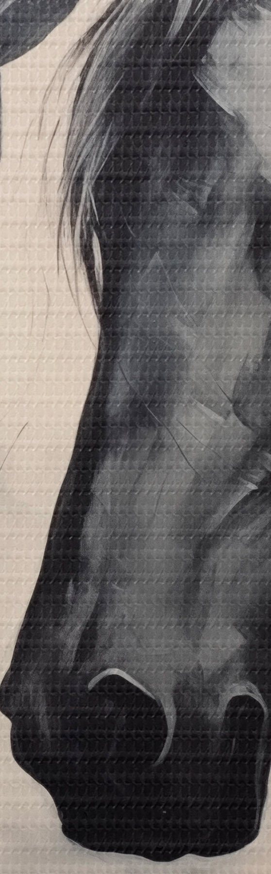 Selle lõuendi peenike niidipunus meenutab professionaalse kunstniku lõuendi pinda.