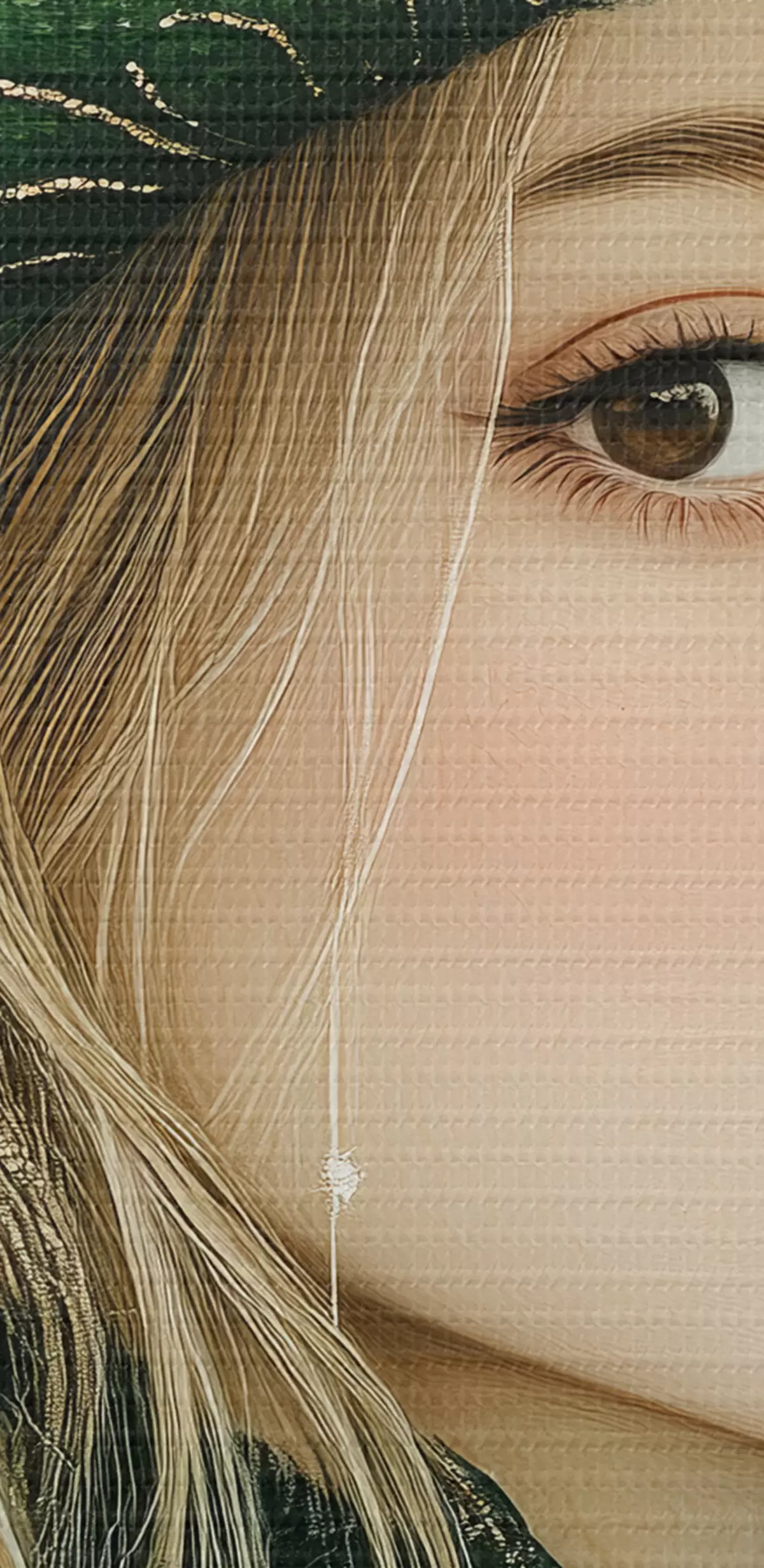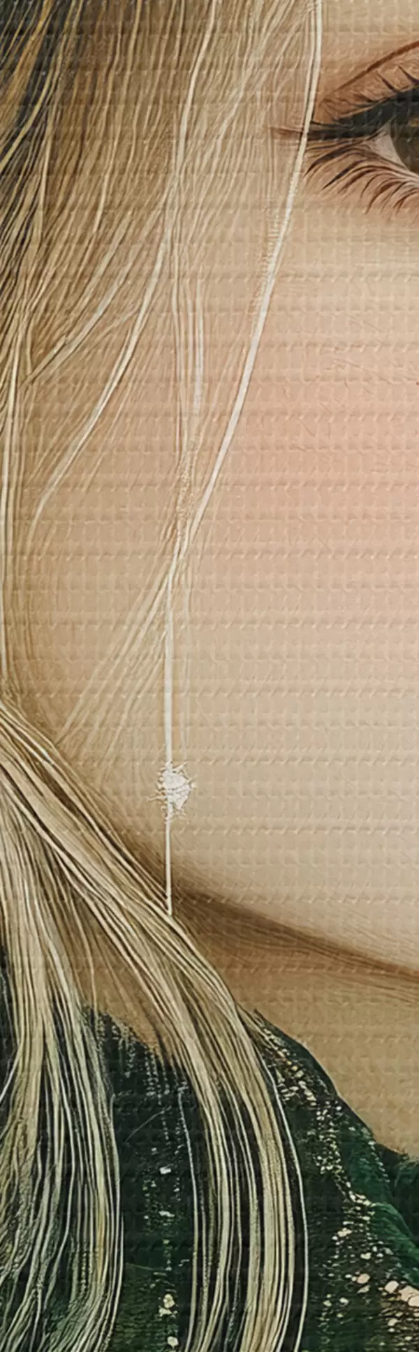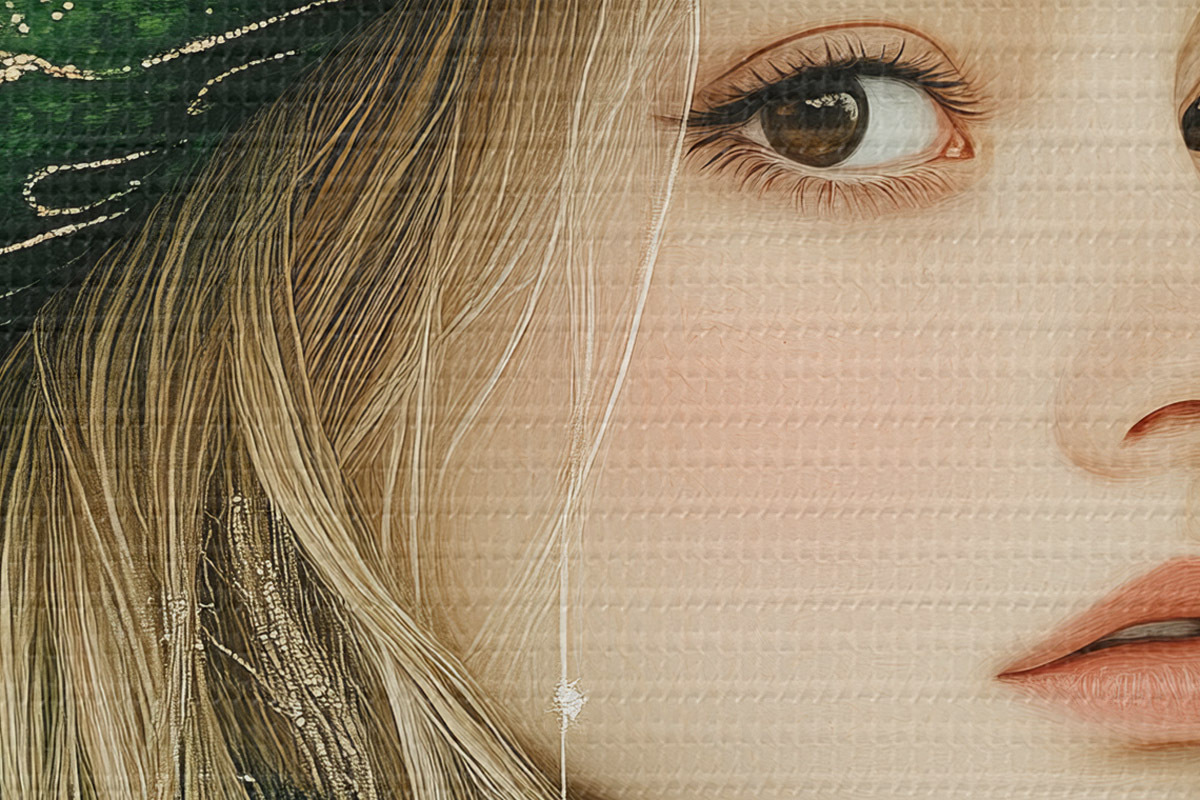 Selle lõuendi peenike niidipunus meenutab professionaalse kunstniku lõuendi pinda.