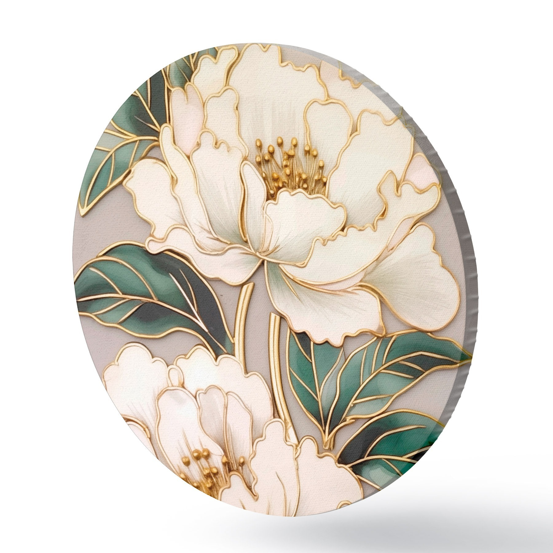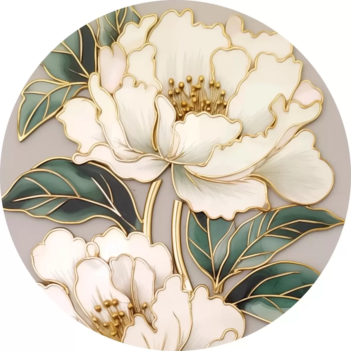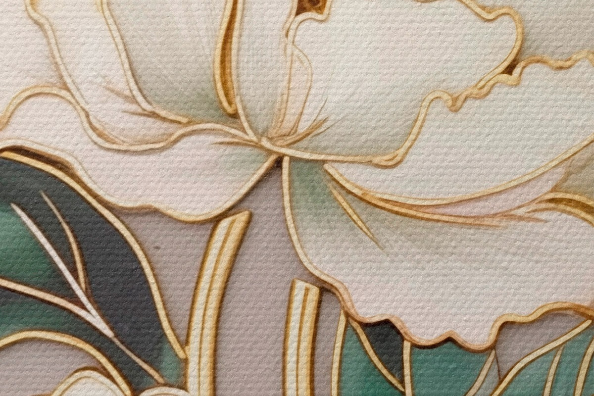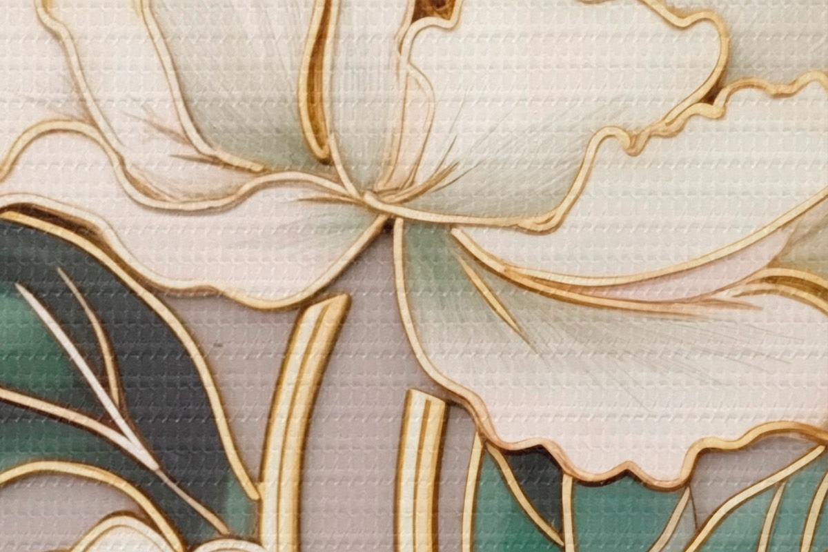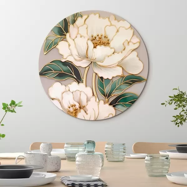 Pilt Valged lilled roheliste lehtedega dekoratiivses paigutuses Nr r43011