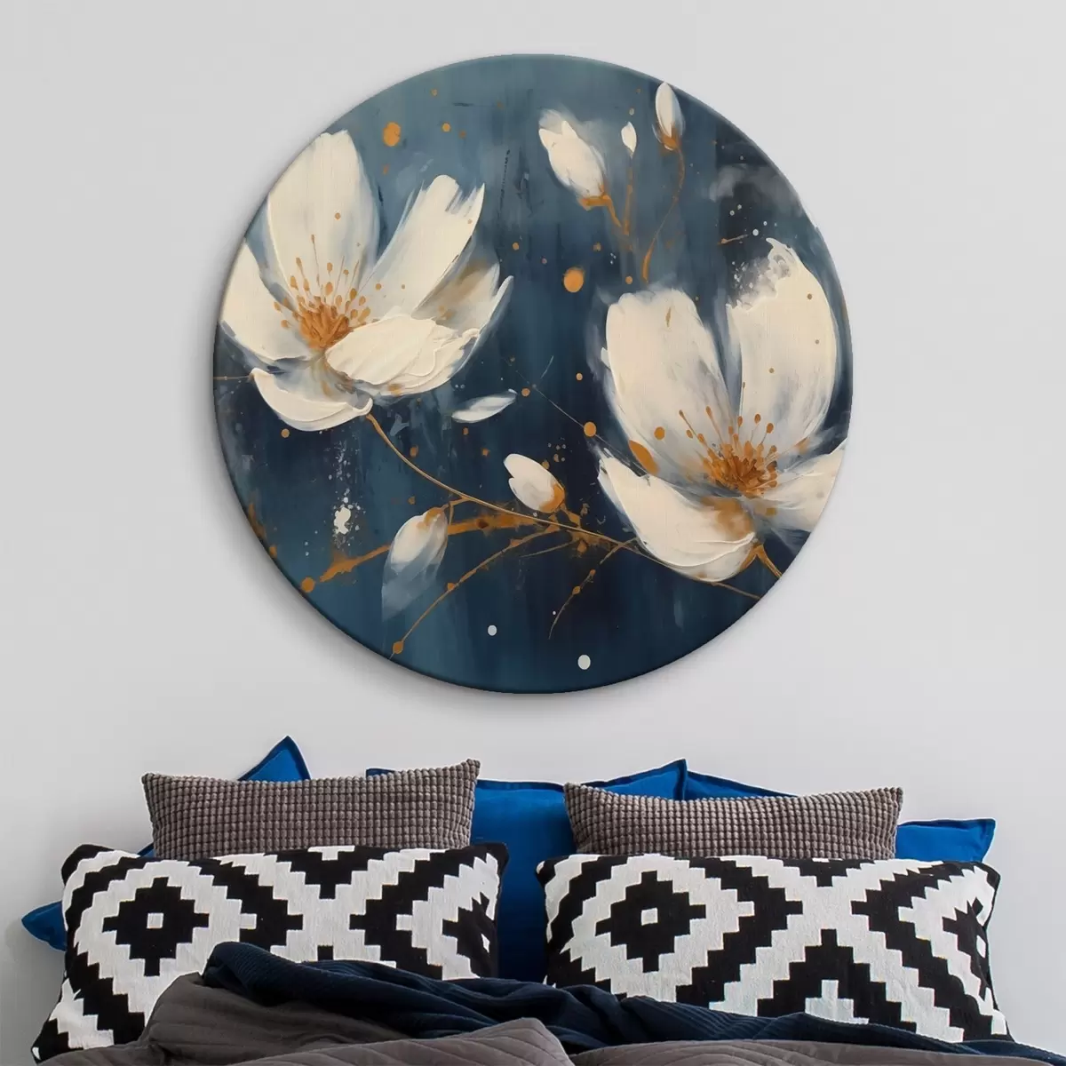 Pilt Valged lilled sinisel taustal Nr r43025