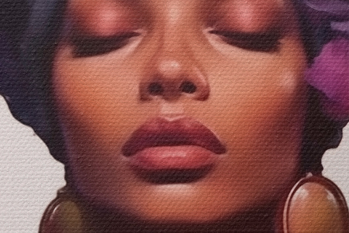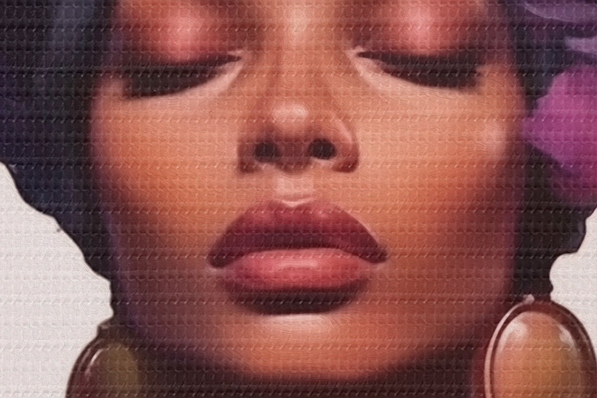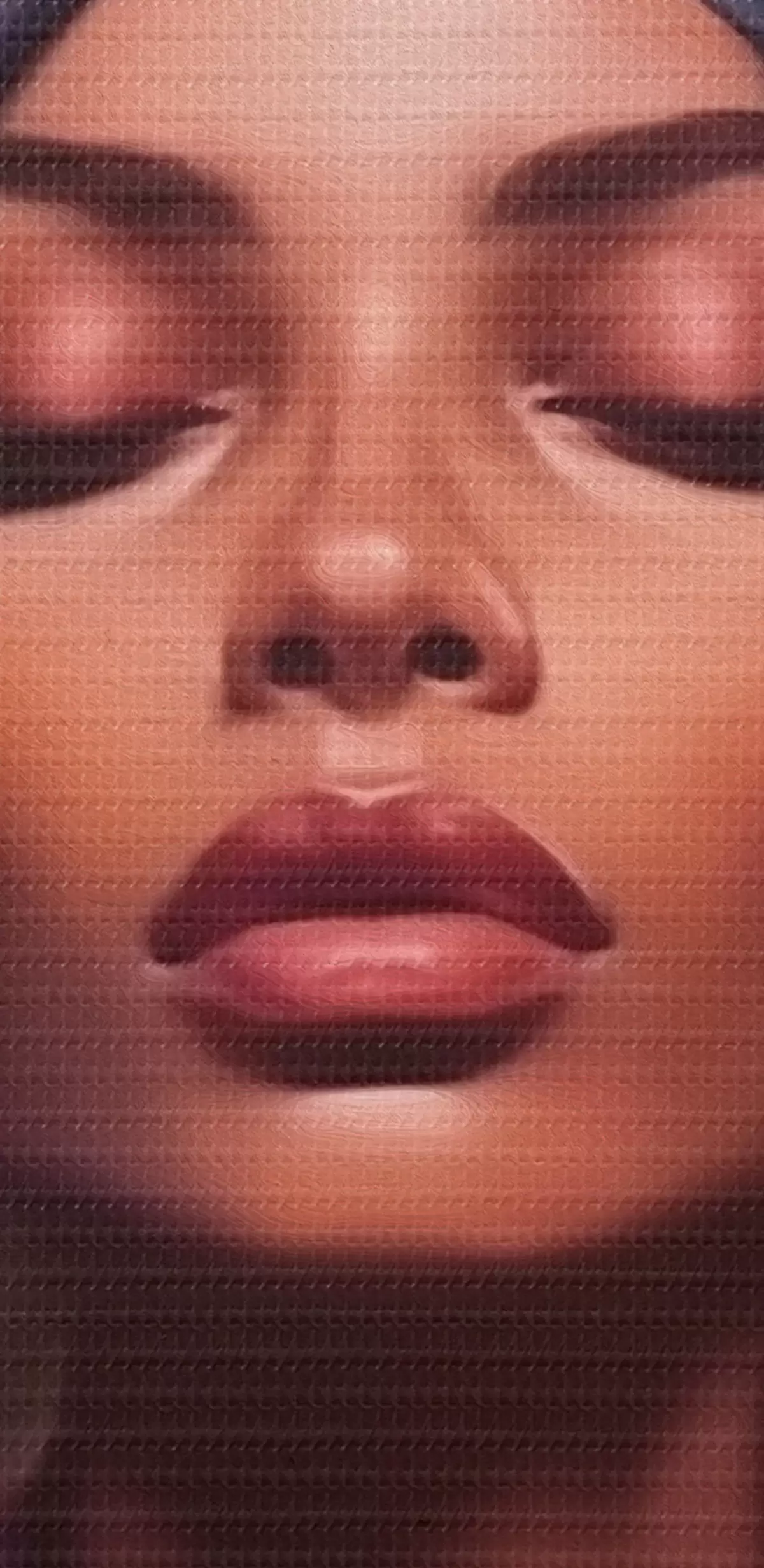 Selle lõuendi peenike niidipunus meenutab professionaalse kunstniku lõuendi pinda.