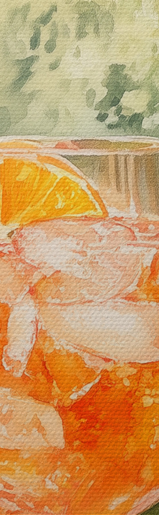 Pilt Maitsev kokteil apelsinidega, rustikaalne stiil, akvarell, loodus Nr r43060