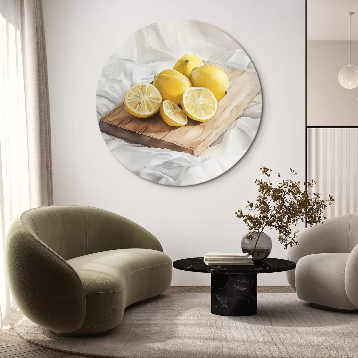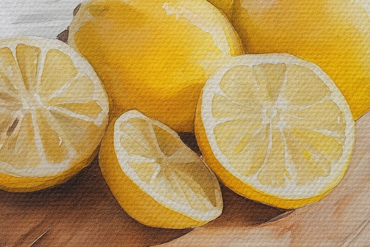 Pilt Esteetilised sidrunid puitlaual, kodukaunistus, loomulik valgustus Nr r43062