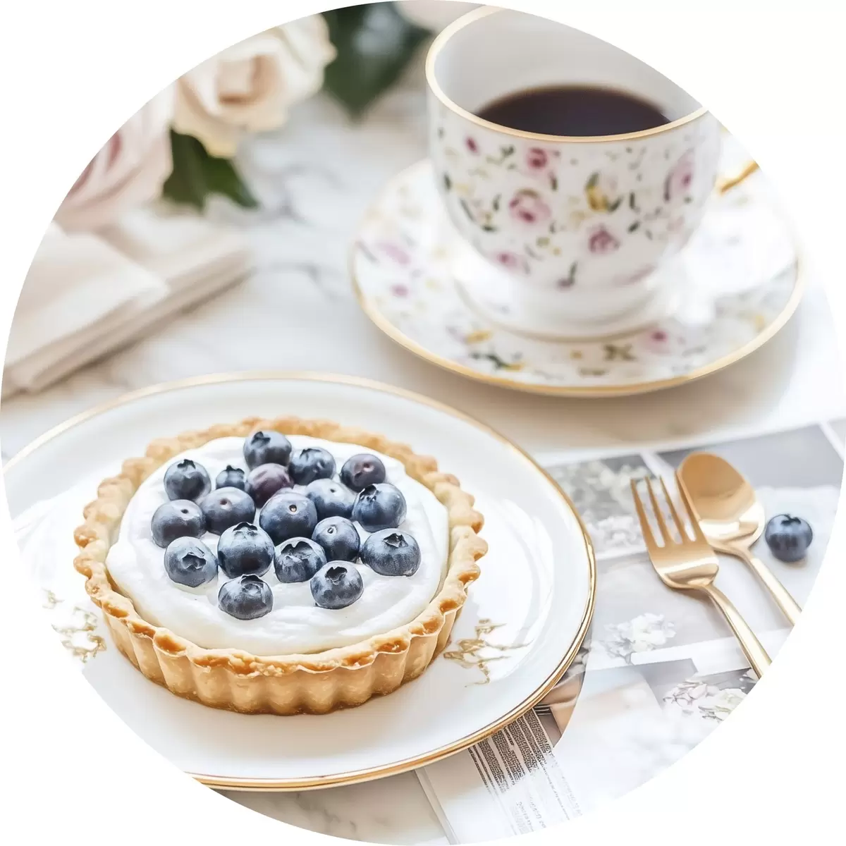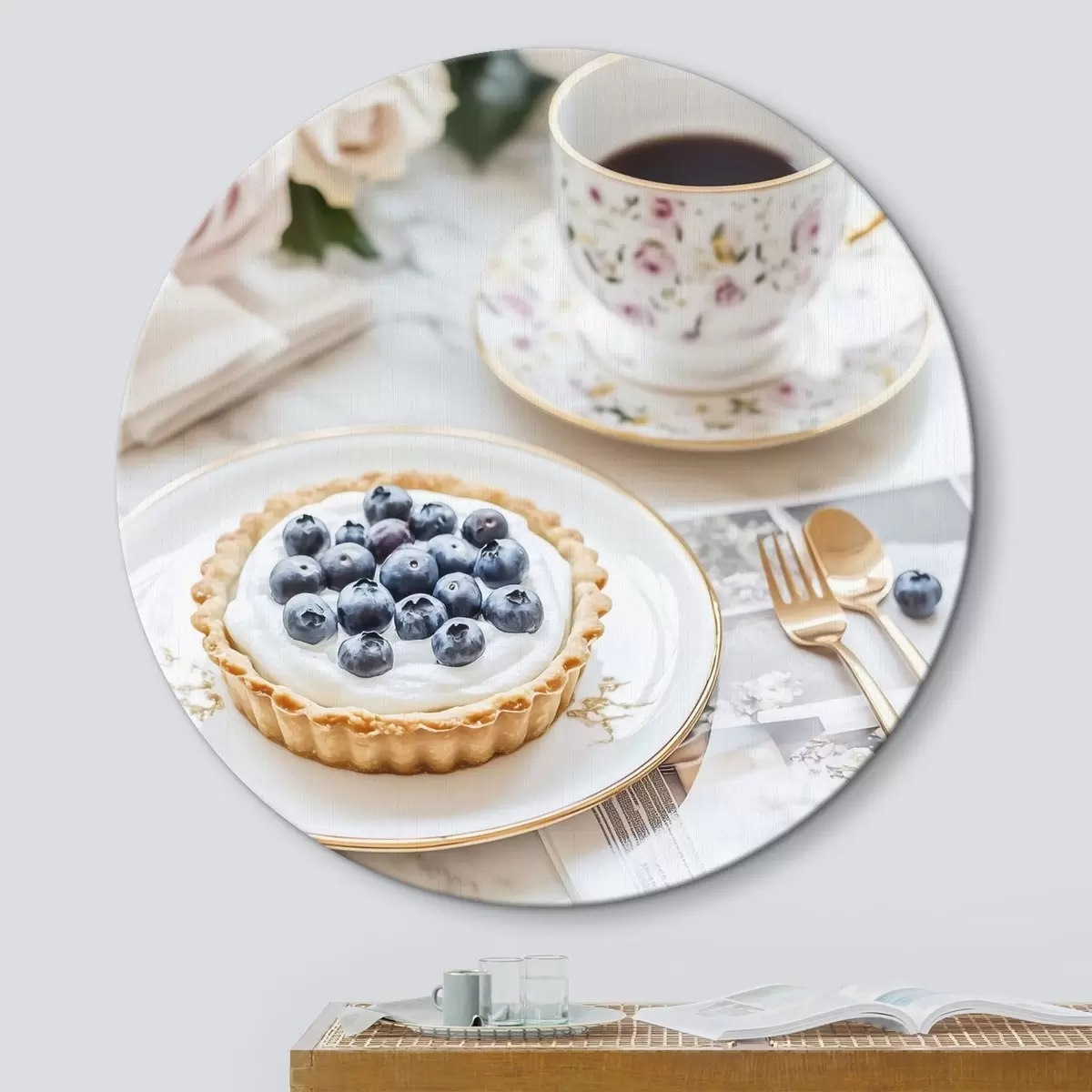 Pilt Mustikakook tassikese teega, boho stiilis, roosad roosid roosid Nr r43066