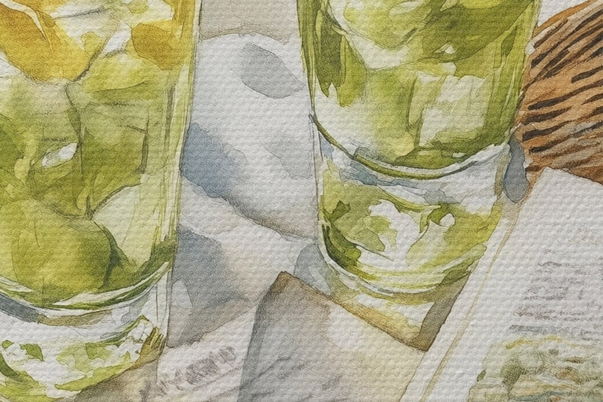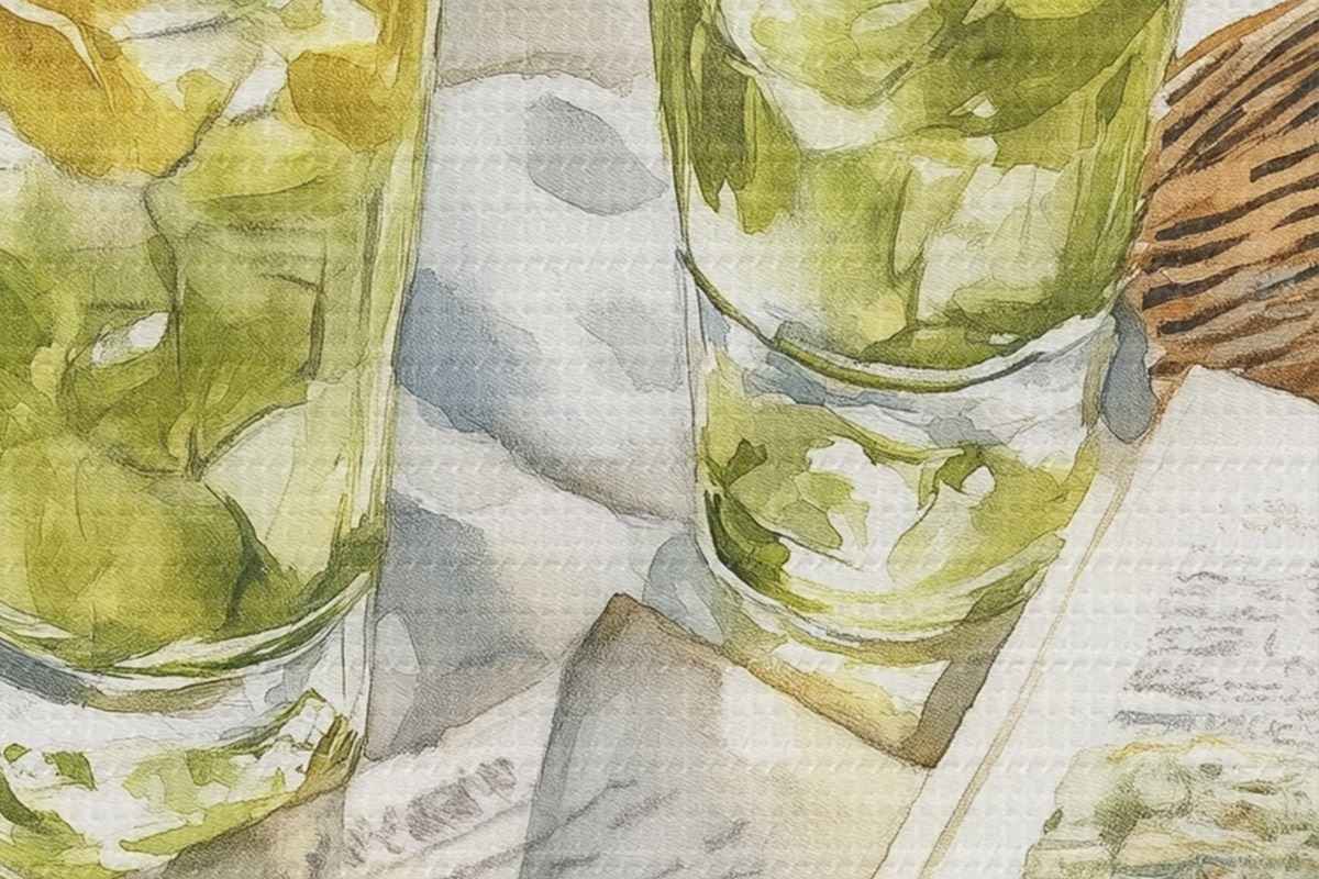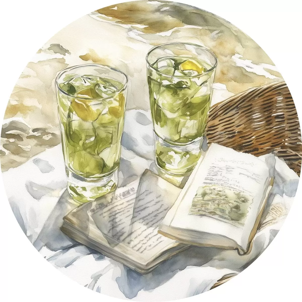Pilt Piknik mere ääres, suvised kokteilid, luule, akvarellistiil Nr r43068