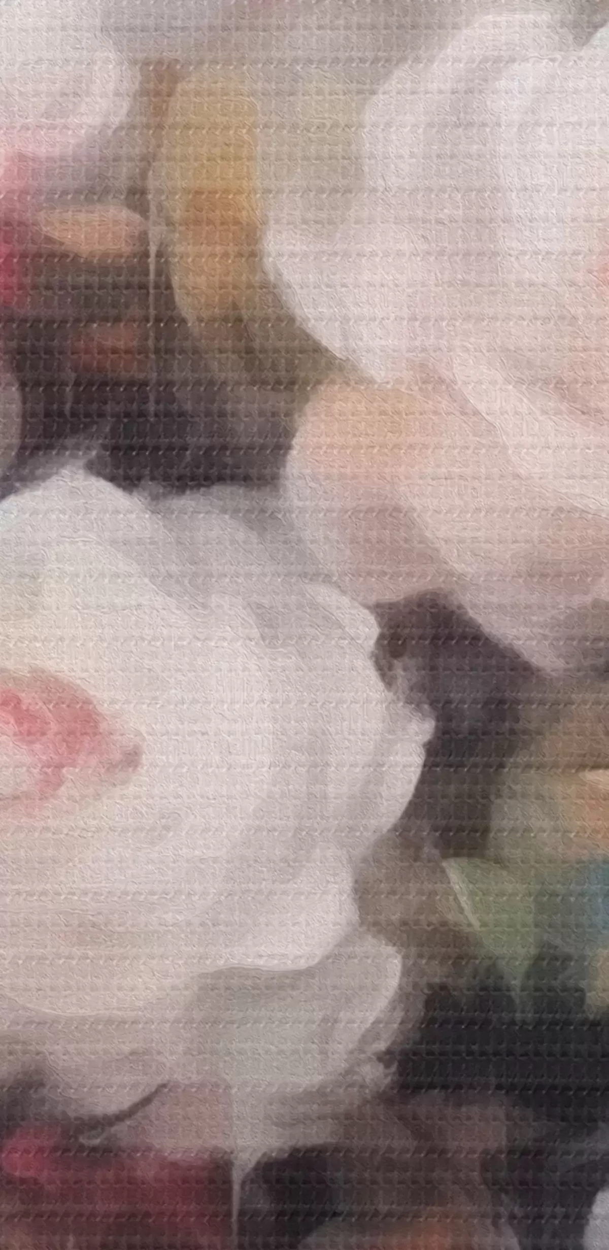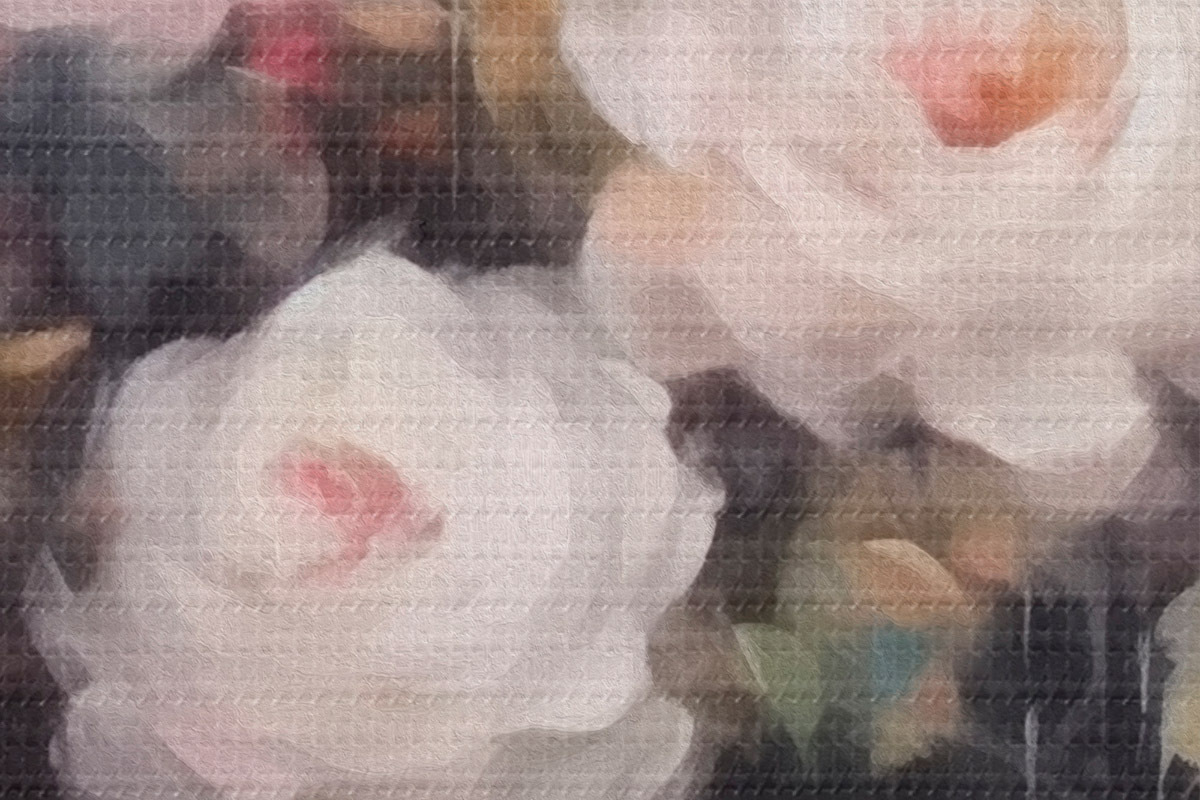 Selle lõuendi peenike niidipunus meenutab professionaalse kunstniku lõuendi pinda.