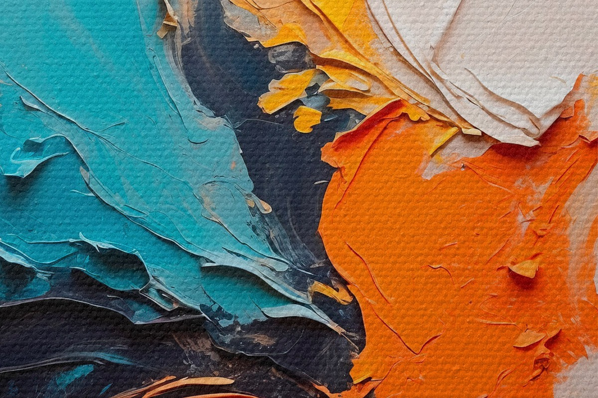 Pilt Abstraktne maal õlimaal stiilis oranž, sinine ja valge värvid Nr r43094