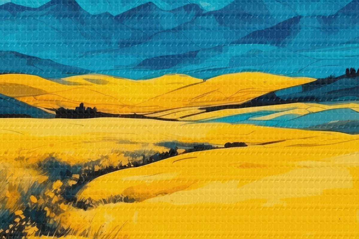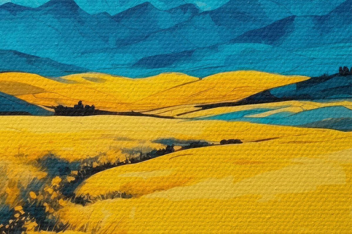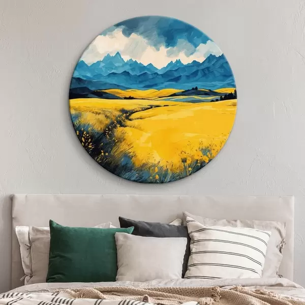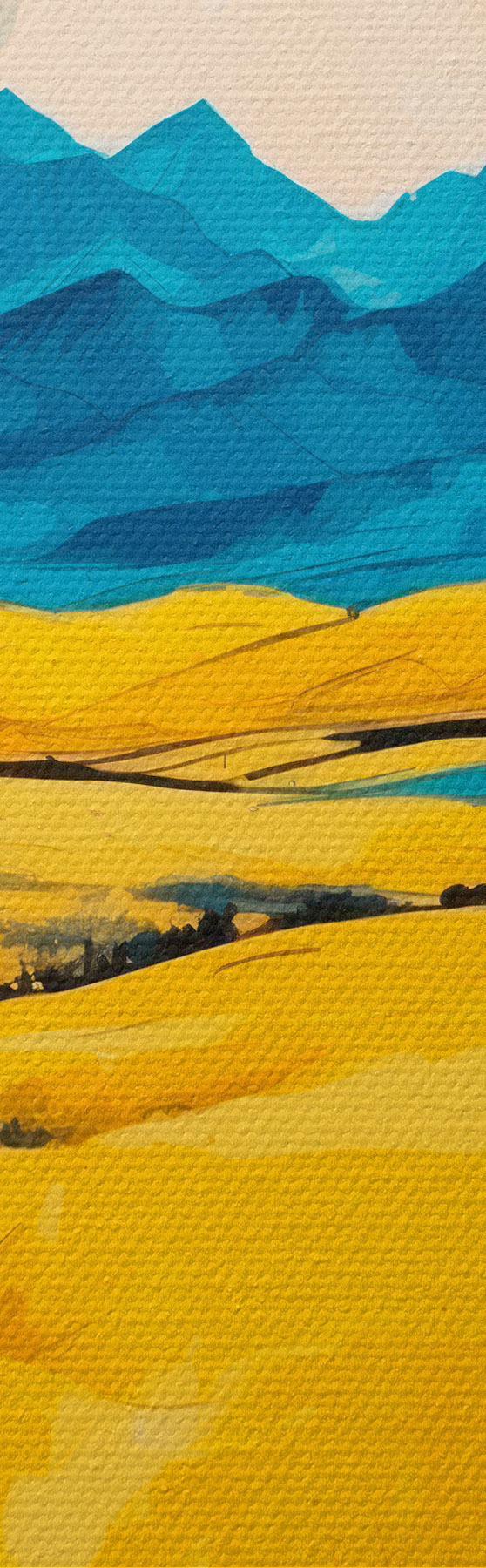 Pilt Kollane väli mägede taustal akvarellmaalide stiilis Nr r43117