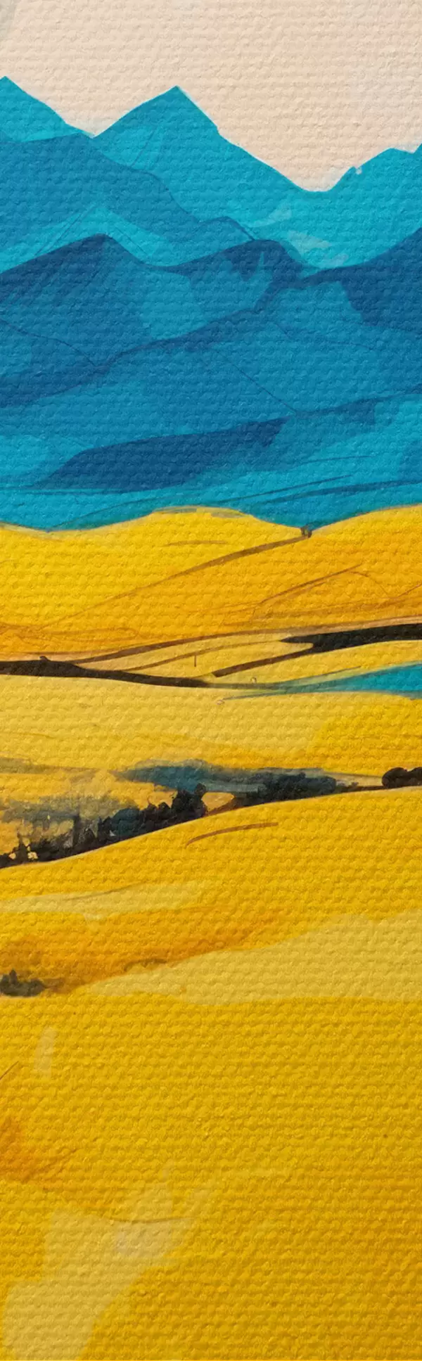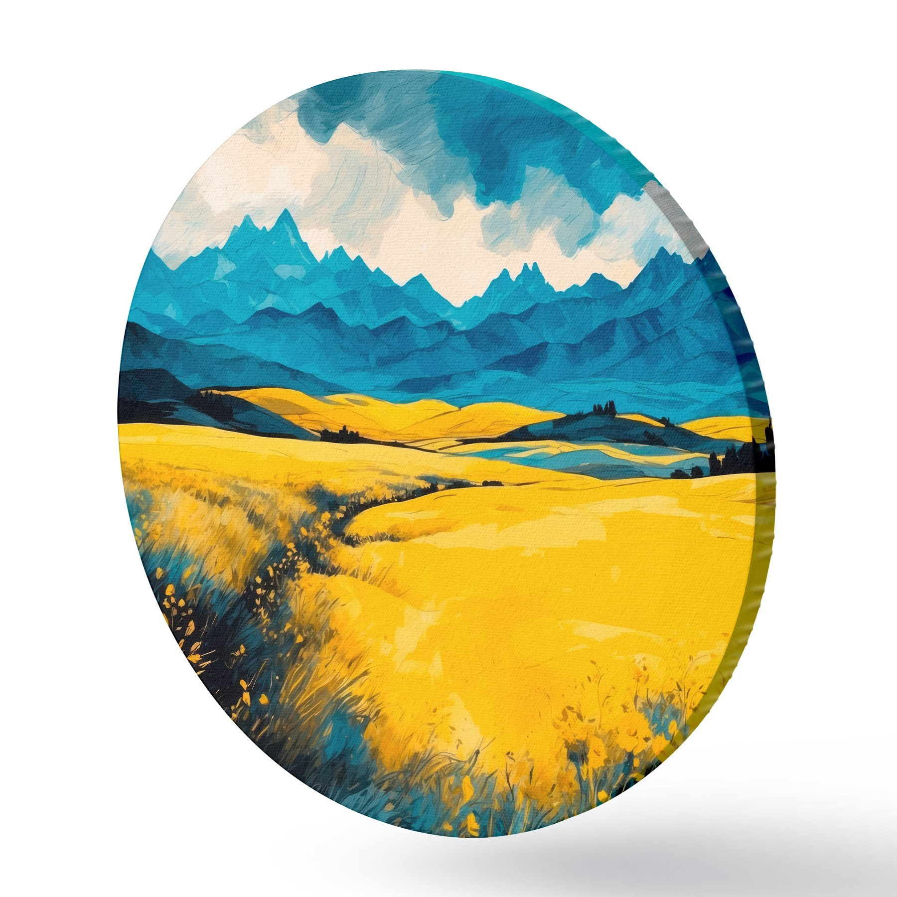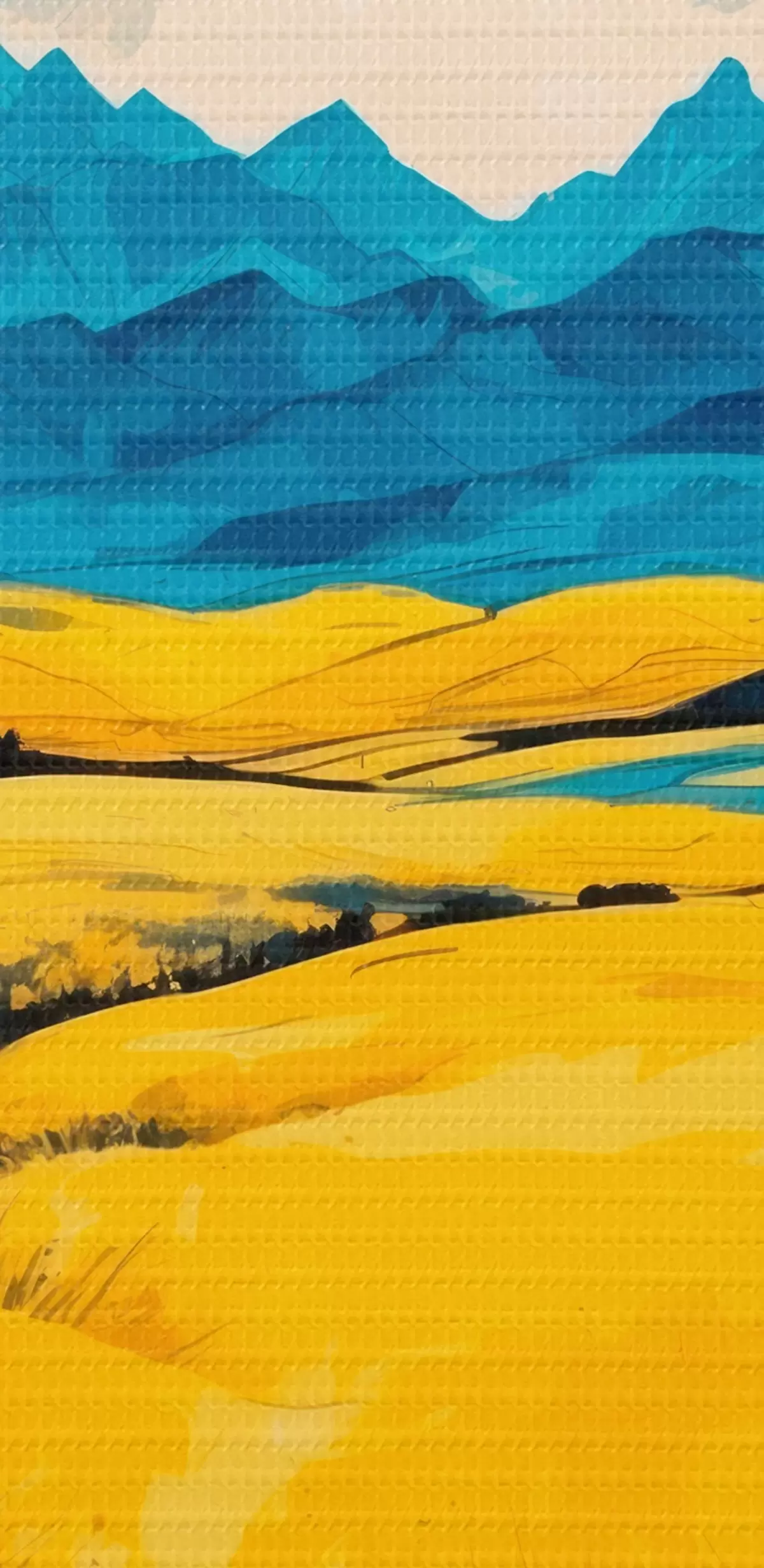 Pilt Kollane väli mägede taustal akvarellmaalide stiilis Nr r43117