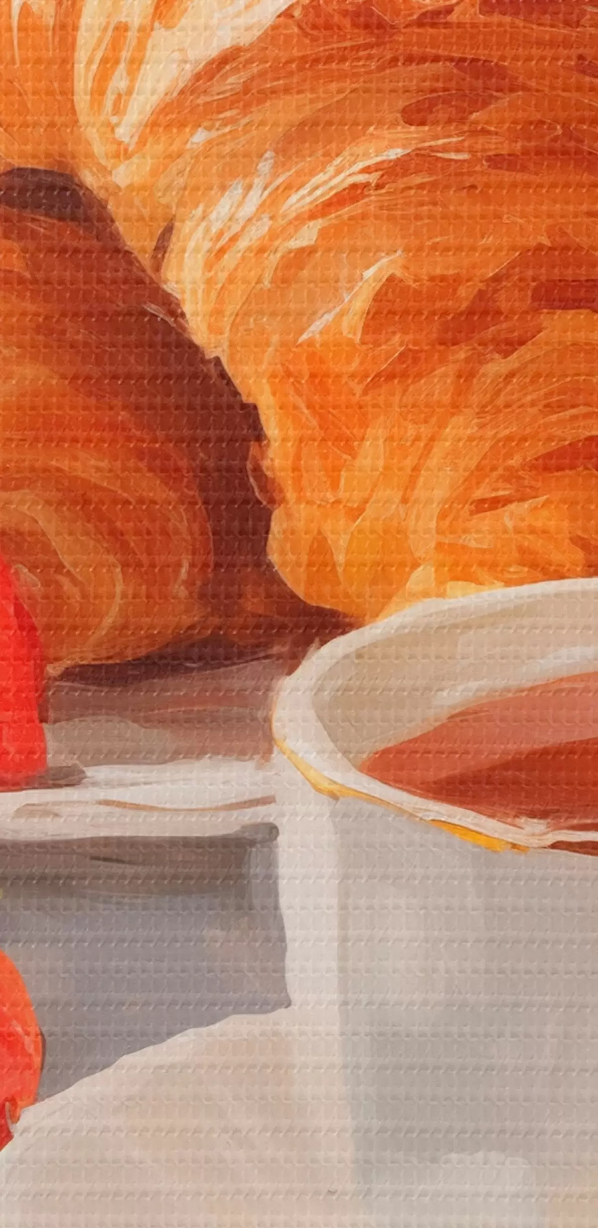 Selle lõuendi peenike niidipunus meenutab professionaalse kunstniku lõuendi pinda.