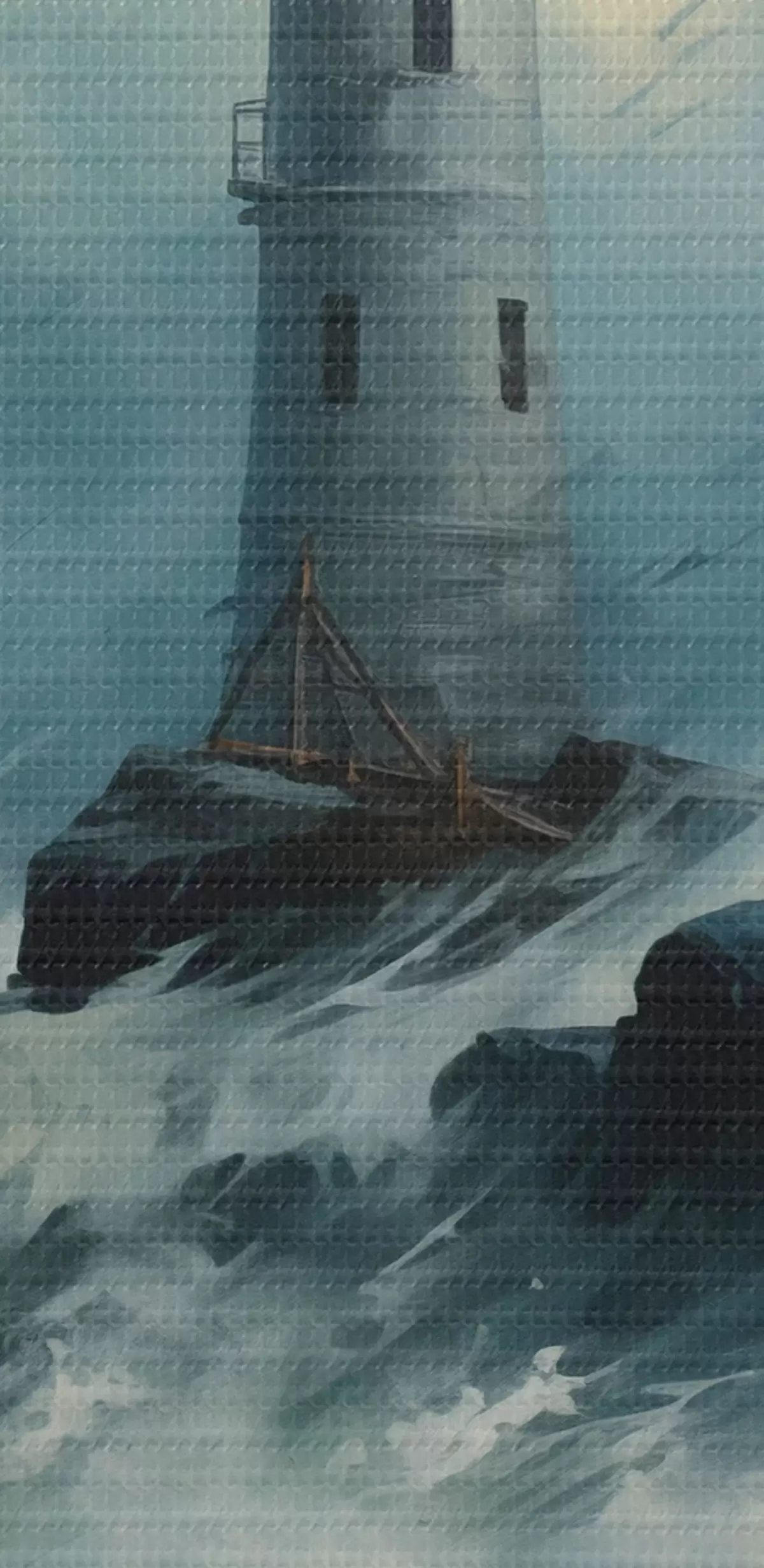 Selle lõuendi peenike niidipunus meenutab professionaalse kunstniku lõuendi pinda.