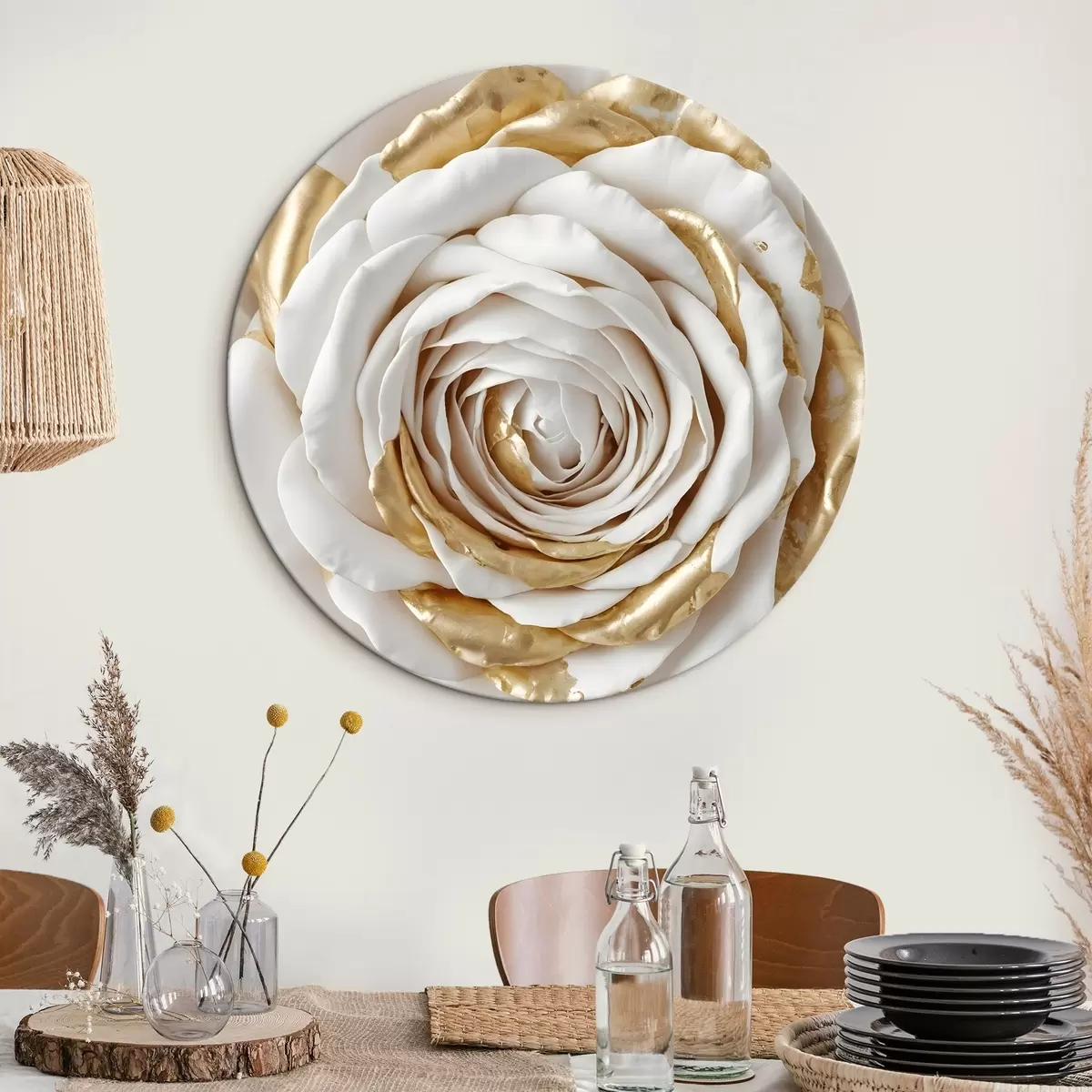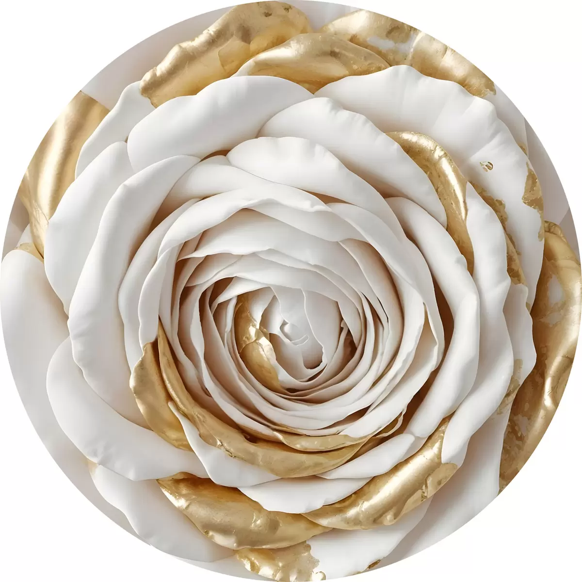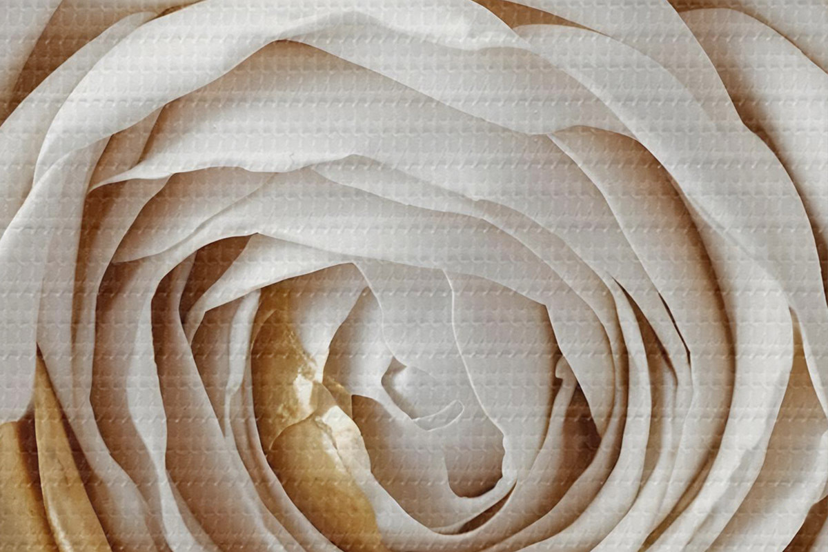 Pilt Valge minimalistlik dekoratiivne roos kollaste aktsentidega, kroonlehed on kihilised ja kumerad Nr r43160