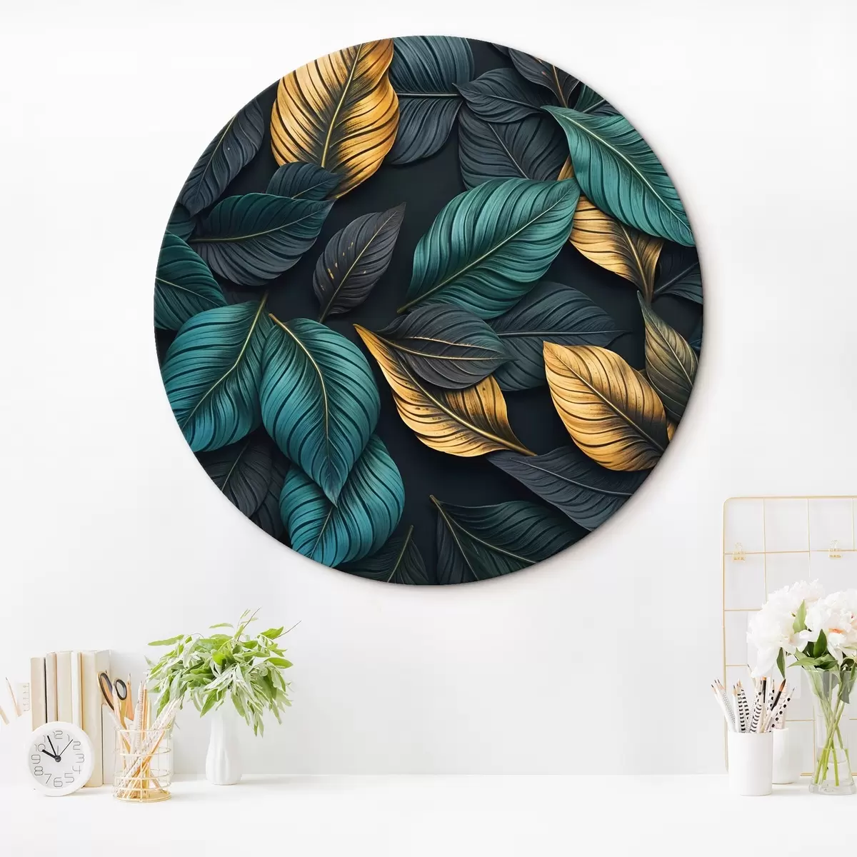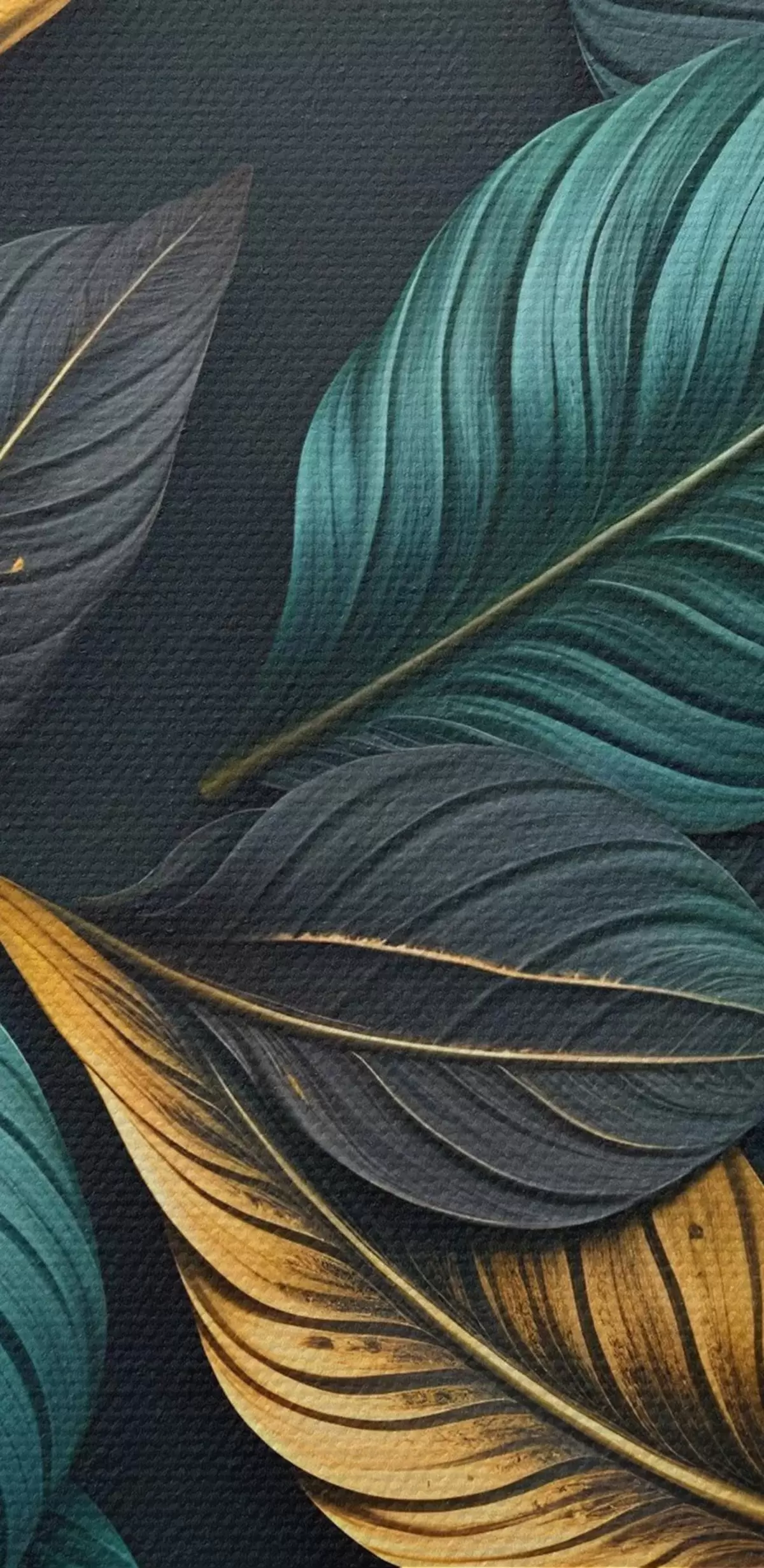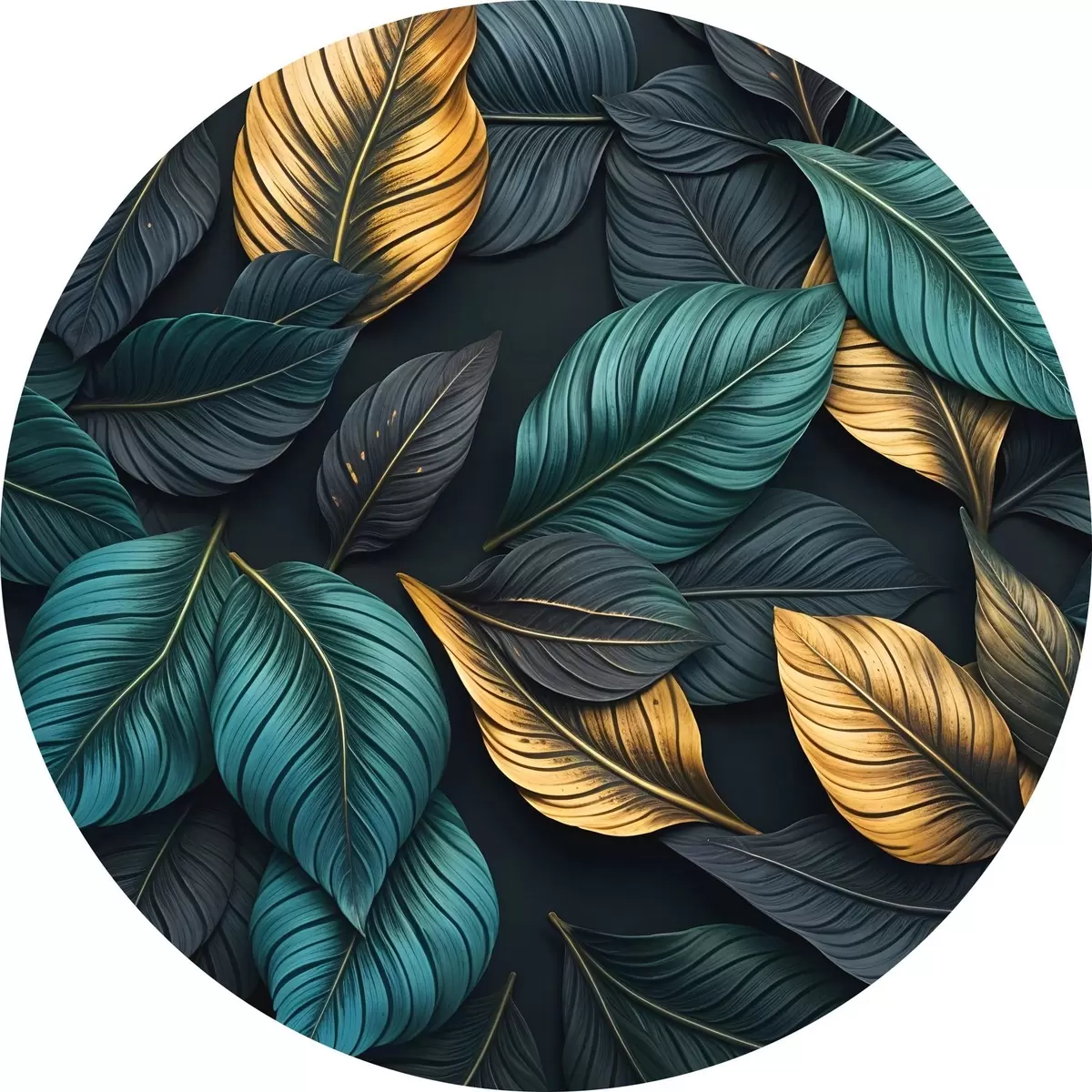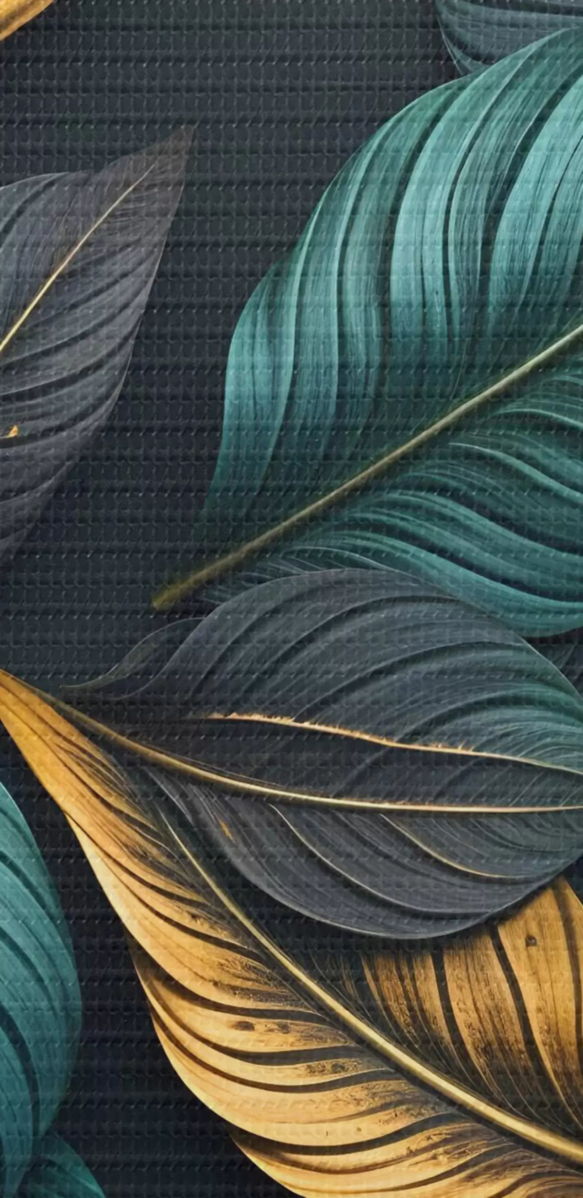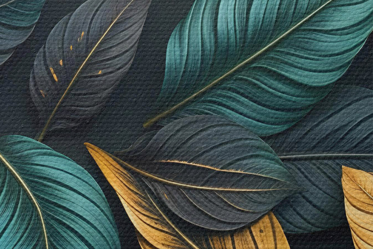 Pilt Tumerohelised, kollased ja mustad lehed tumedate veenidega, tumedal taustal, elegantne troopiline õhkkond Nr r43164