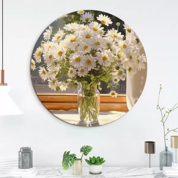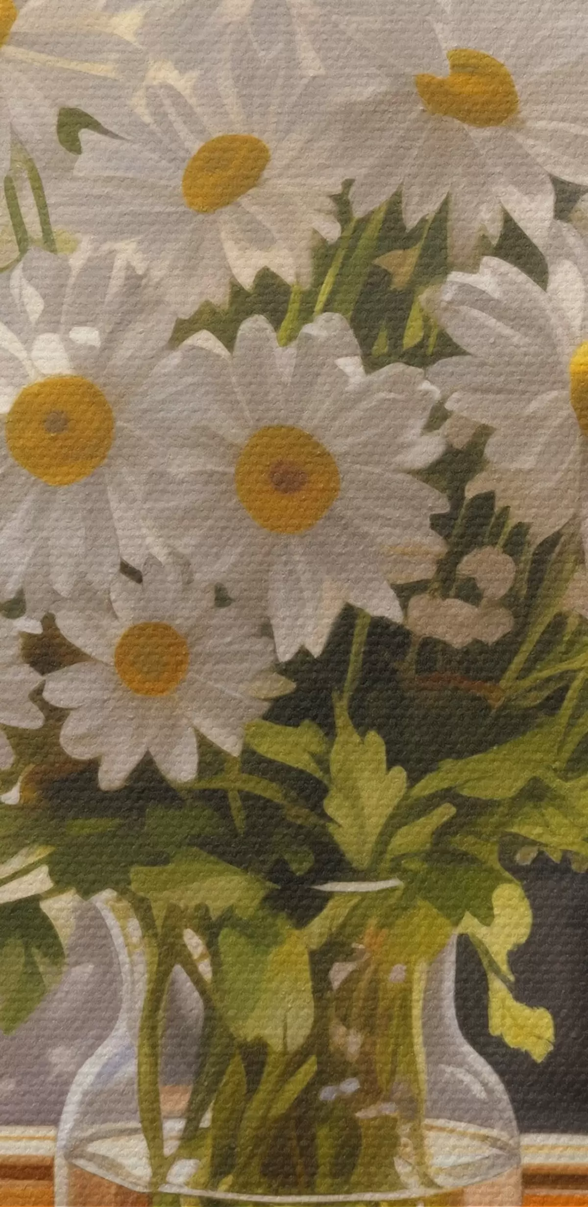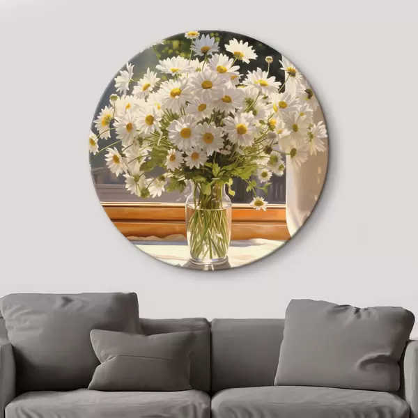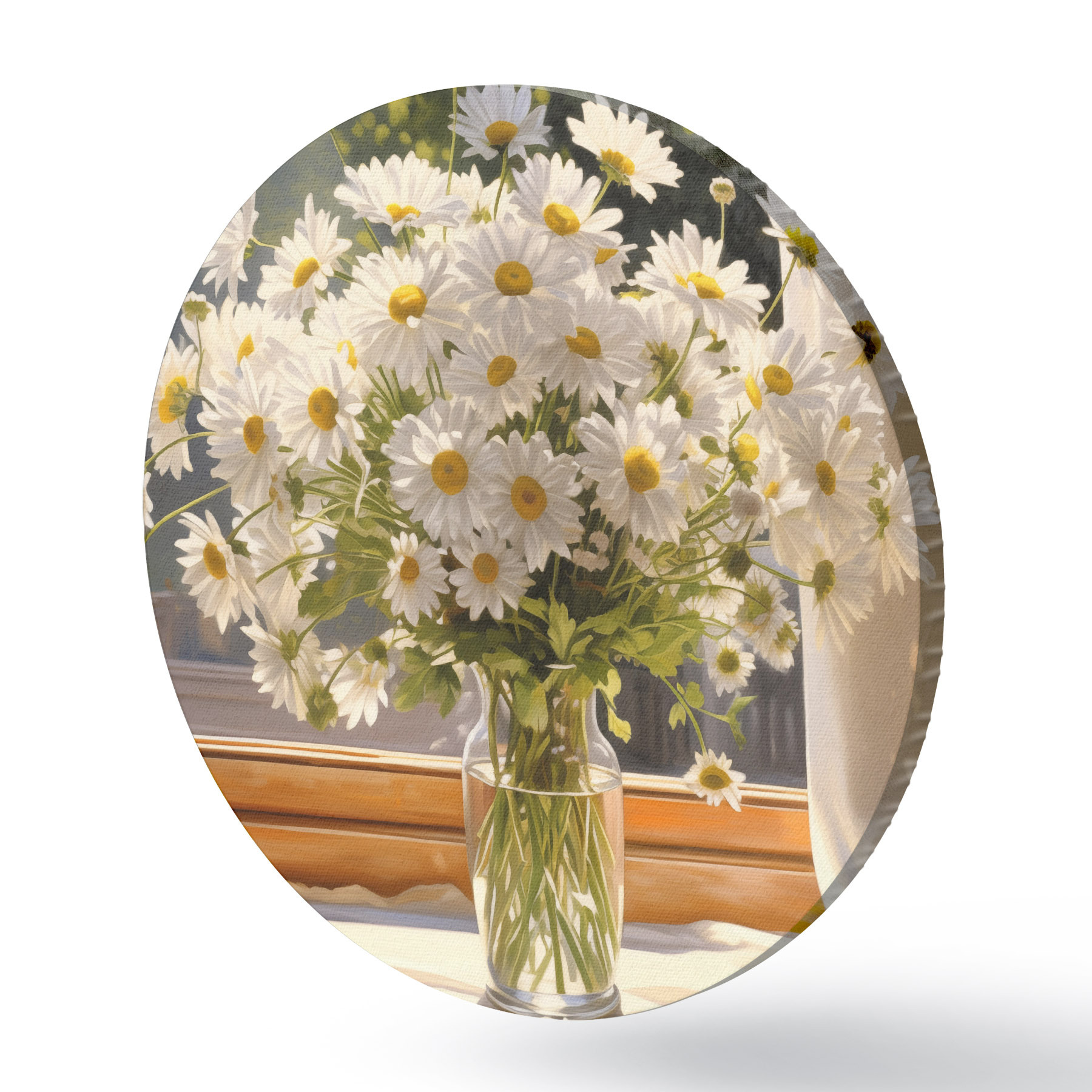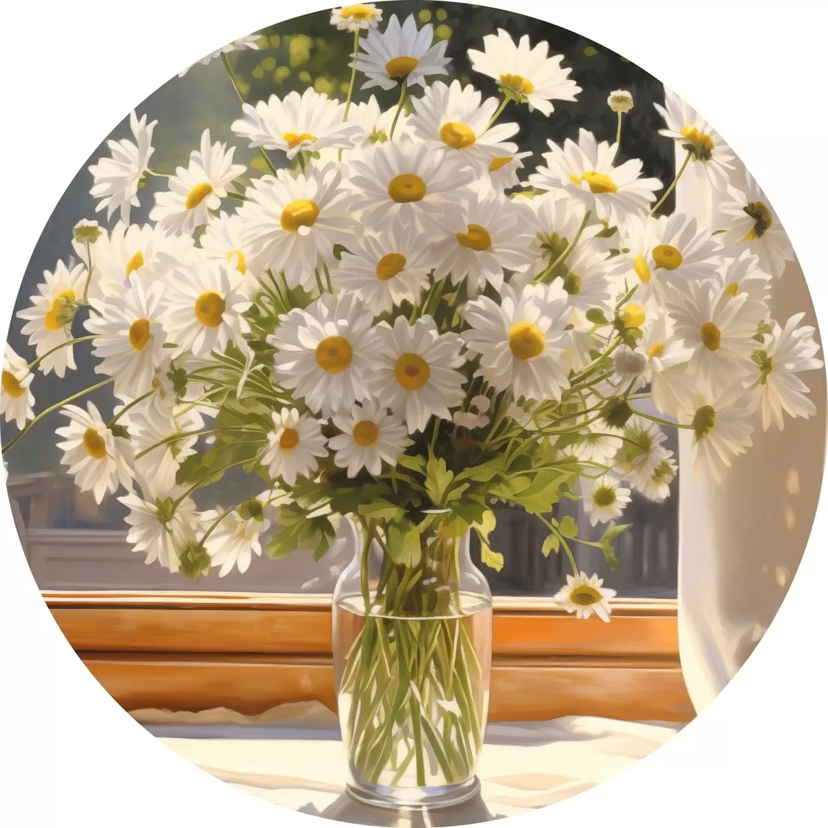 Pilt Õlimaal imitatsioon vaasi valgeid marekad aknalaual, päikesepaisteline päev, soojad värvid palett Nr r43171