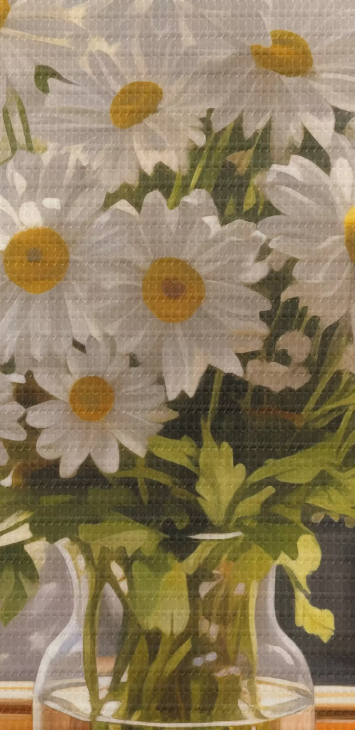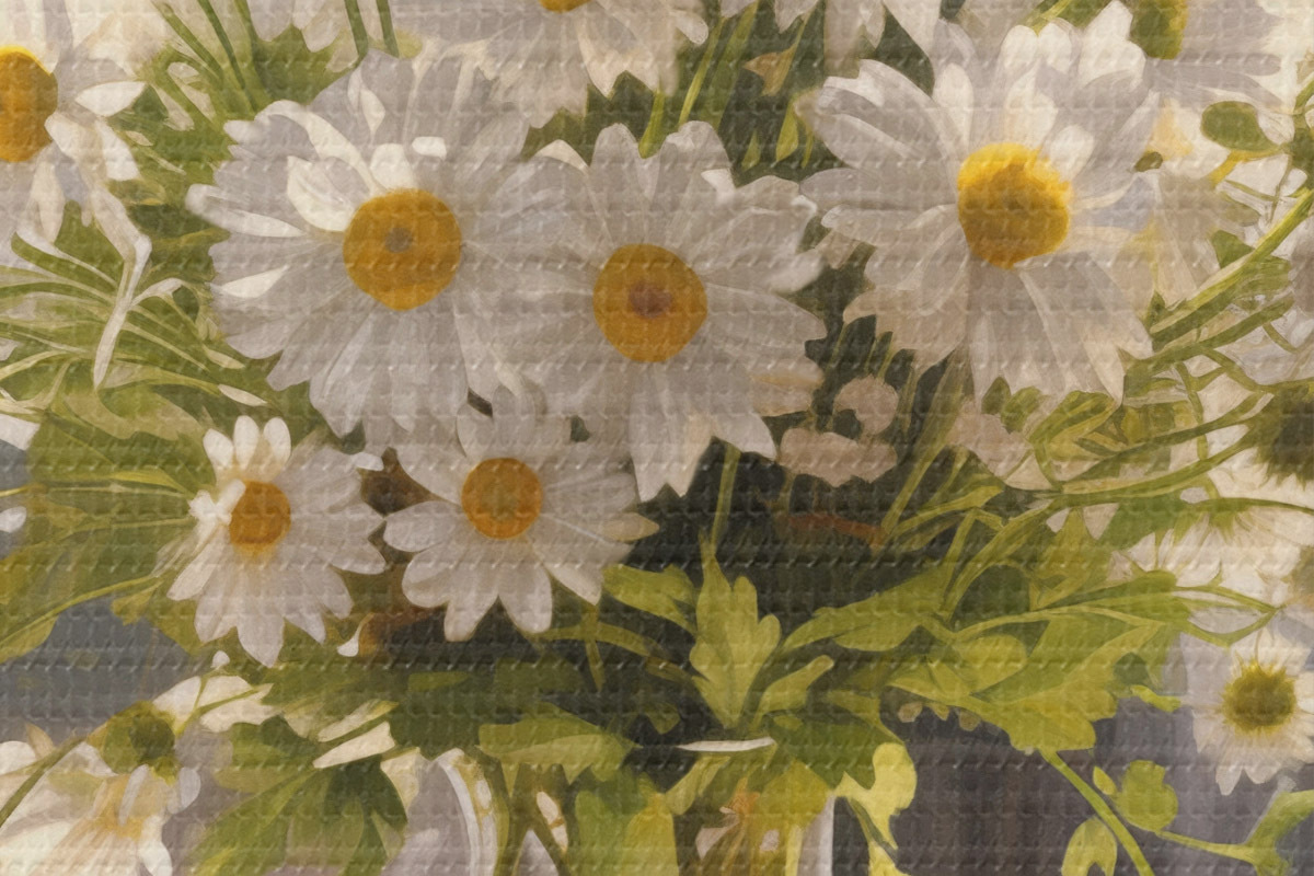 Selle lõuendi peenike niidipunus meenutab professionaalse kunstniku lõuendi pinda.